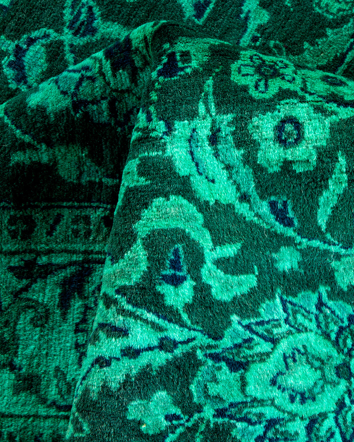 Overdyed rugs epitomize classic with a twist: traditional patterns overdyed in brilliant color. Each hand-knotted rug is washed in a 100%-natural botanical dye that reveals hidden nuances in the designs. These are rugs that transcend trends, and their sturdy construction ensures that they’ll withstand years of heavy traffic.