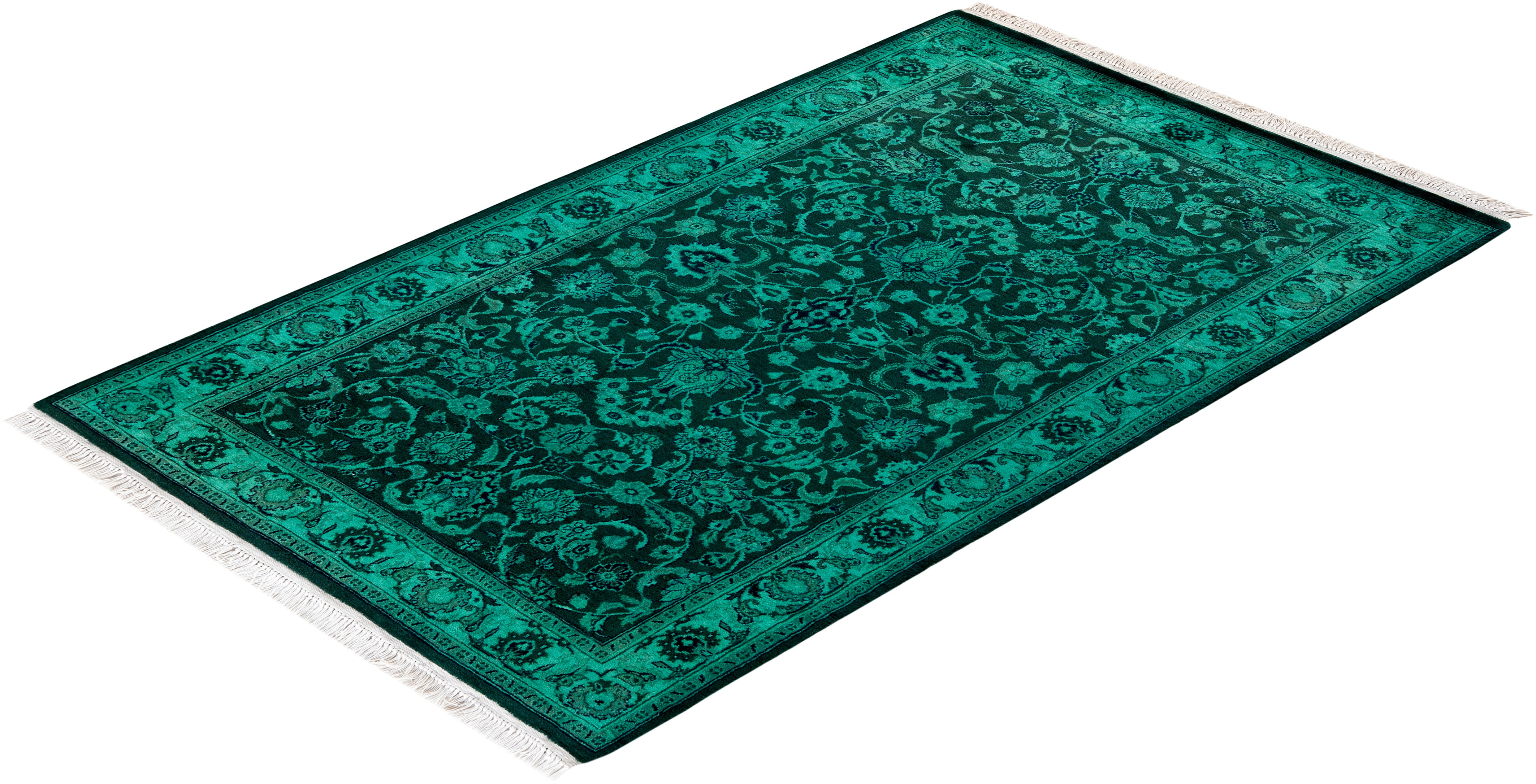 Contemporary Hand-Knotted Overdyed Green Area Rug 3' 2" x 5' 2"