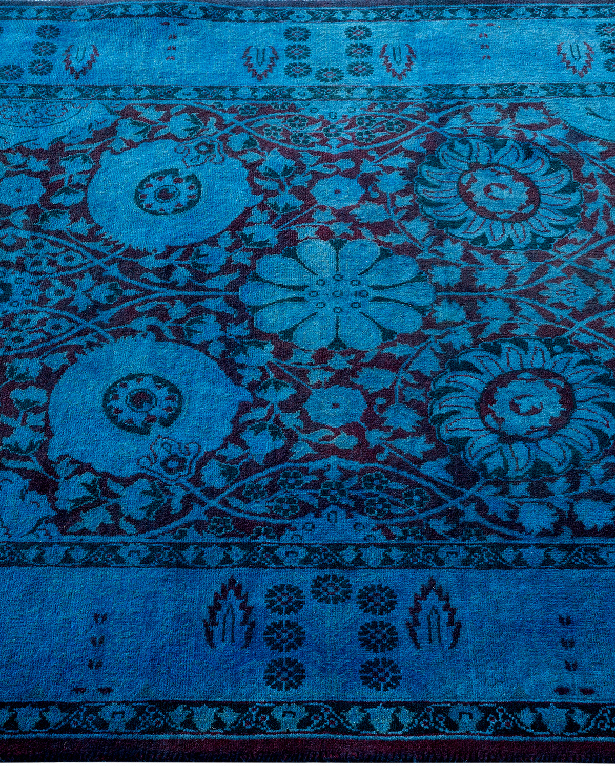 Overdyed rugs epitomize classic with a twist: traditional patterns overdyed in brilliant color. Each hand-knotted rug is washed in a 100%-natural botanical dye that reveals hidden nuances in the designs. These are rugs that transcend trends, and their sturdy construction ensures that they’ll withstand years of heavy traffic.