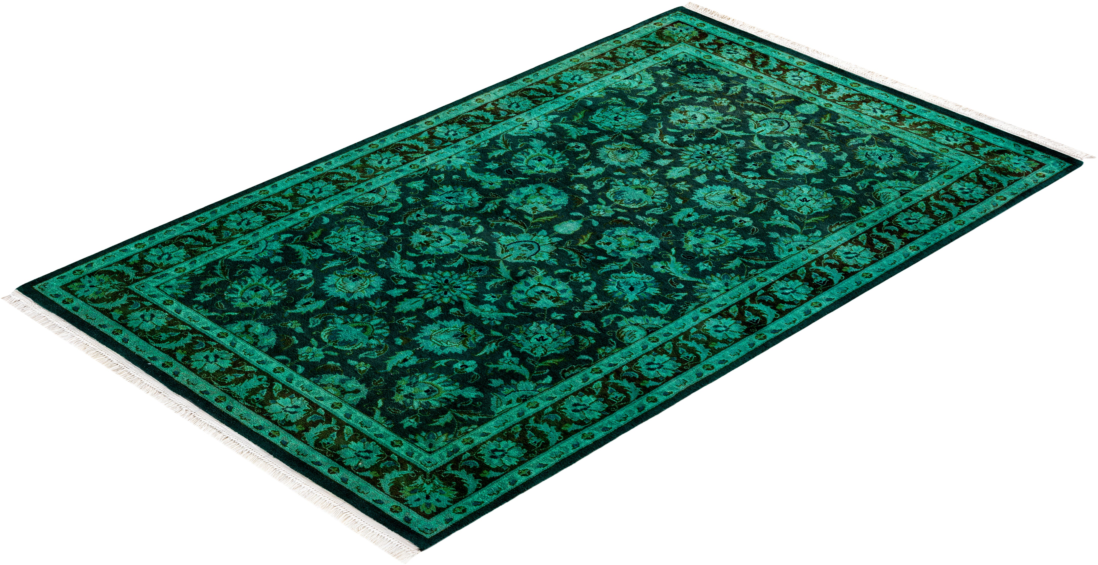 Contemporary Hand-Knotted Overdyed Green Area Rug 3' 2" x 5' 2"
