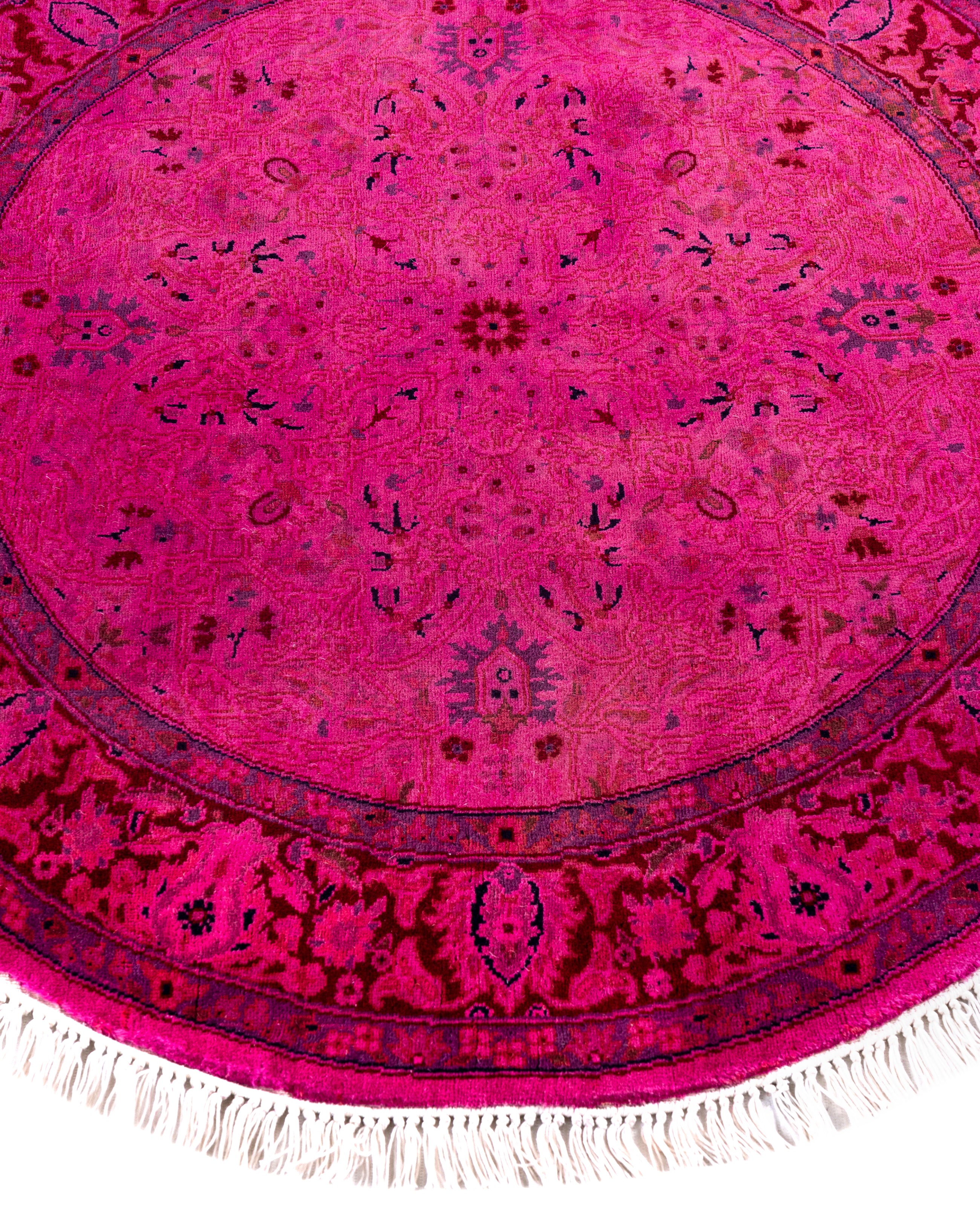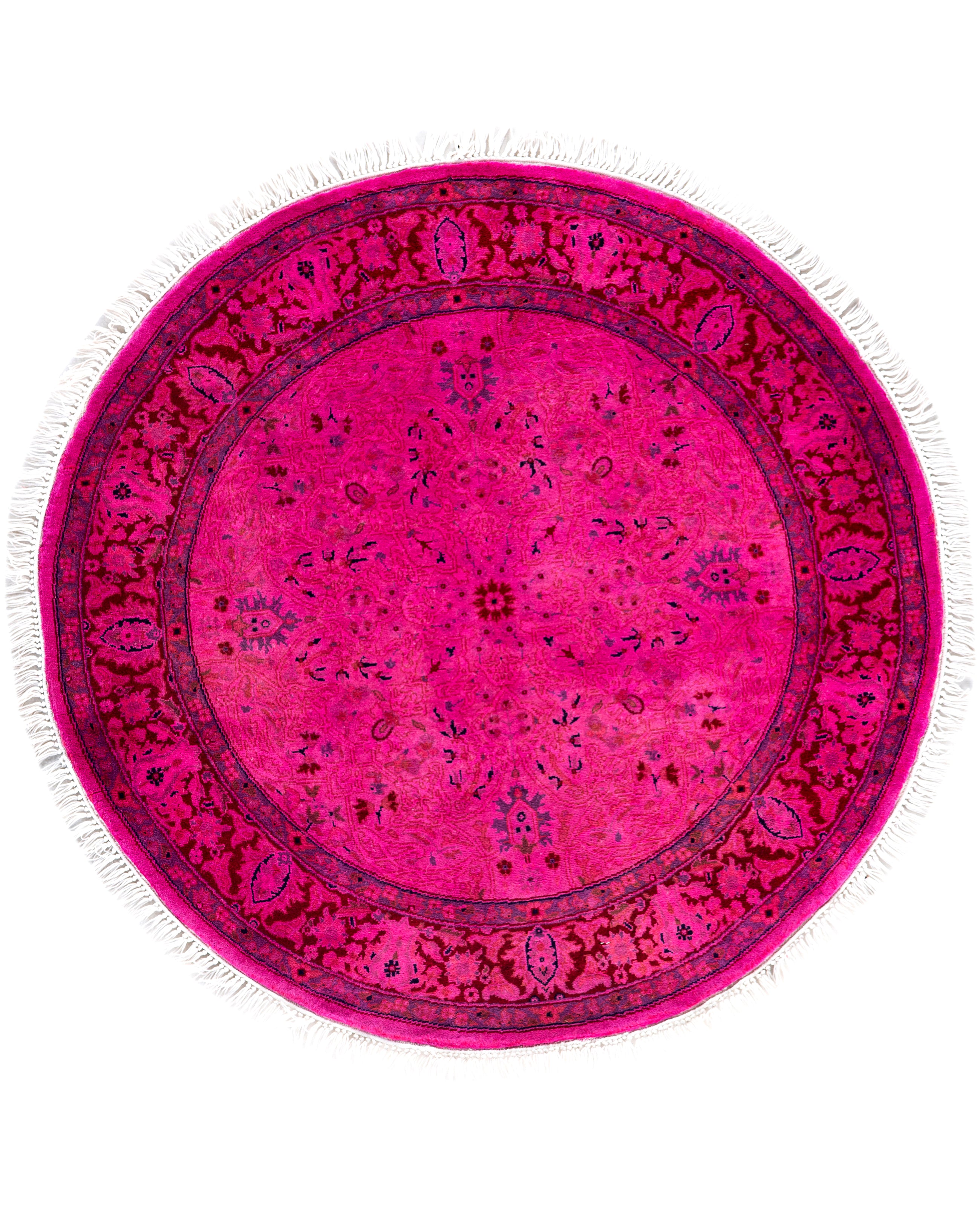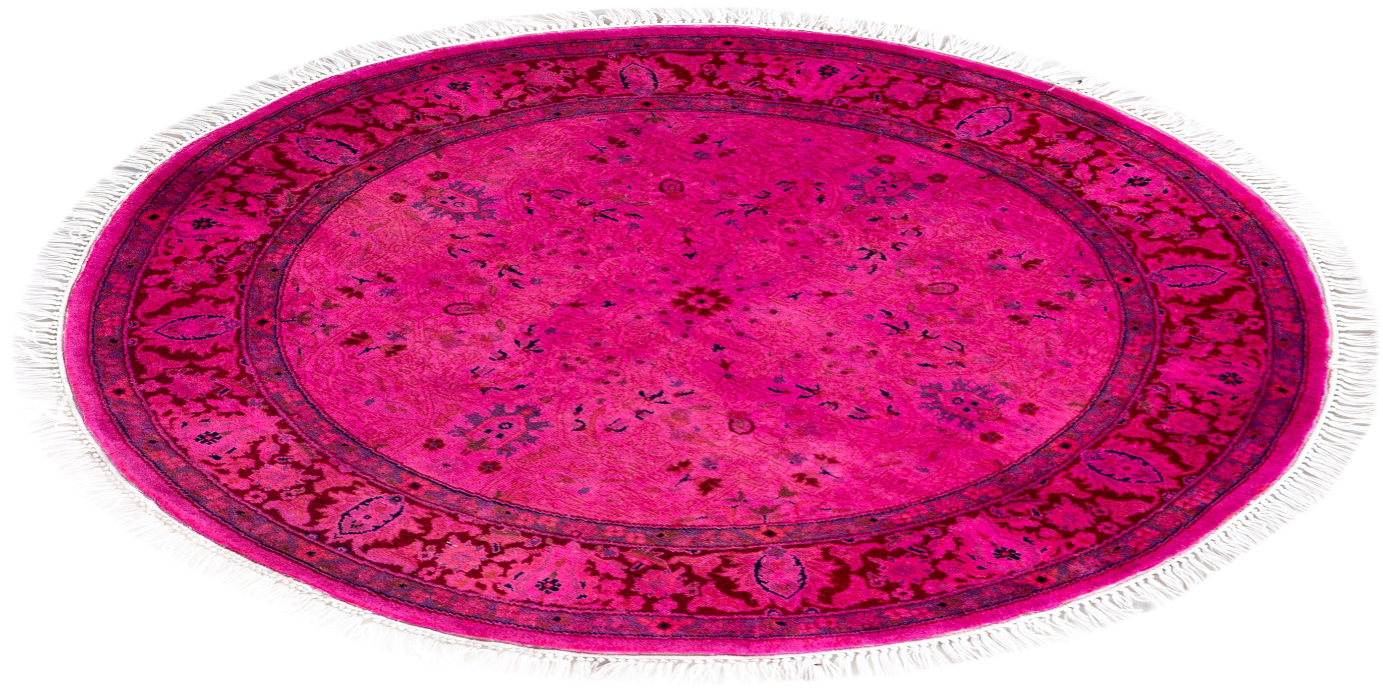 Overdyed One-of-a-Kind Wool Pink Round Area Rug 3' 1" x 3' 1"