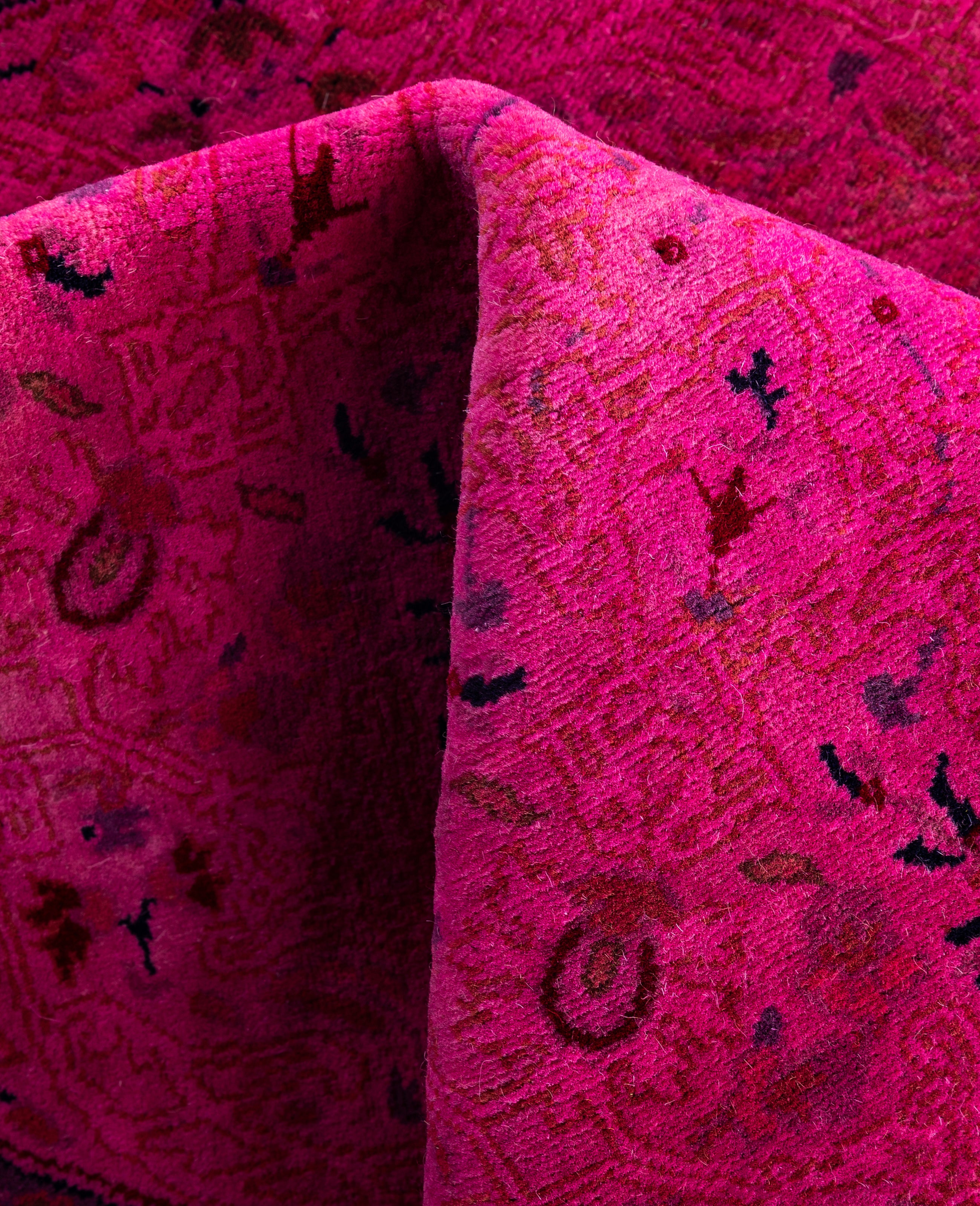 Over-dyed area rugs are created by taking vintage or traditional rugs and applying a vibrant, monochromatic dye over the existing patterns. This technique results in a bold, modern aesthetic while preserving the intricate designs beneath, blending the old with the new. The rugs are often faded and distressed before dyeing, which adds texture and depth to their appearance. The over-dye process breathes new life into worn or antique rugs, giving them a contemporary twist with rich, saturated colors like deep blues, purples, or bright reds. These rugs work well in both eclectic and modern spaces, offering a unique, artistic flair to any room. They provide a dynamic focal point, balancing between traditional craftsmanship and contemporary design trends. Over-dyed rugs are perfect for those looking to add a pop of color and character to their home decor.