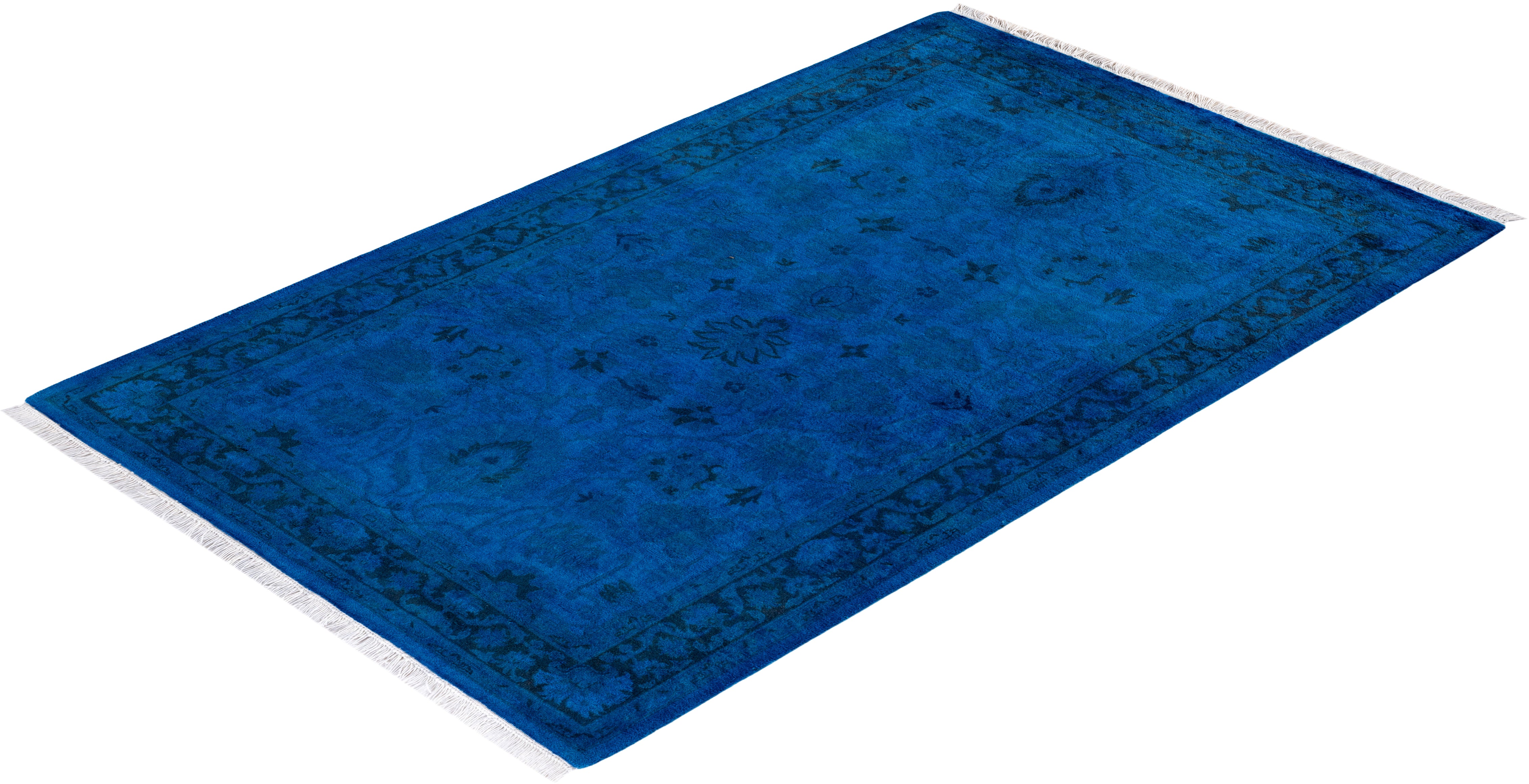 Contemporary Hand-Knotted Overdyed Blue Area Rug 3' 2" x 5' 1"