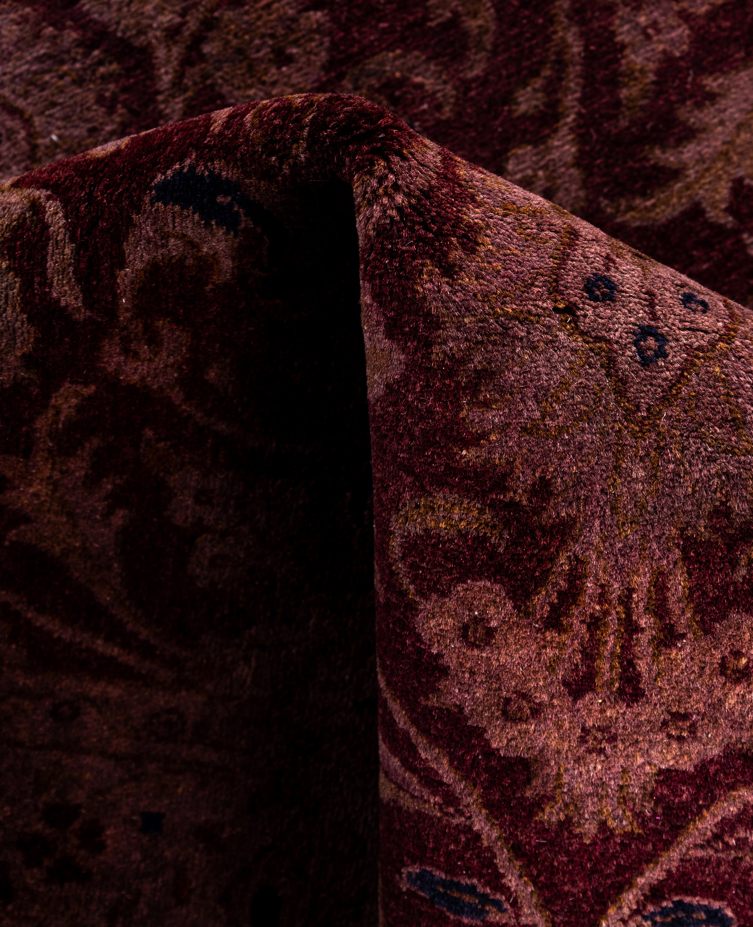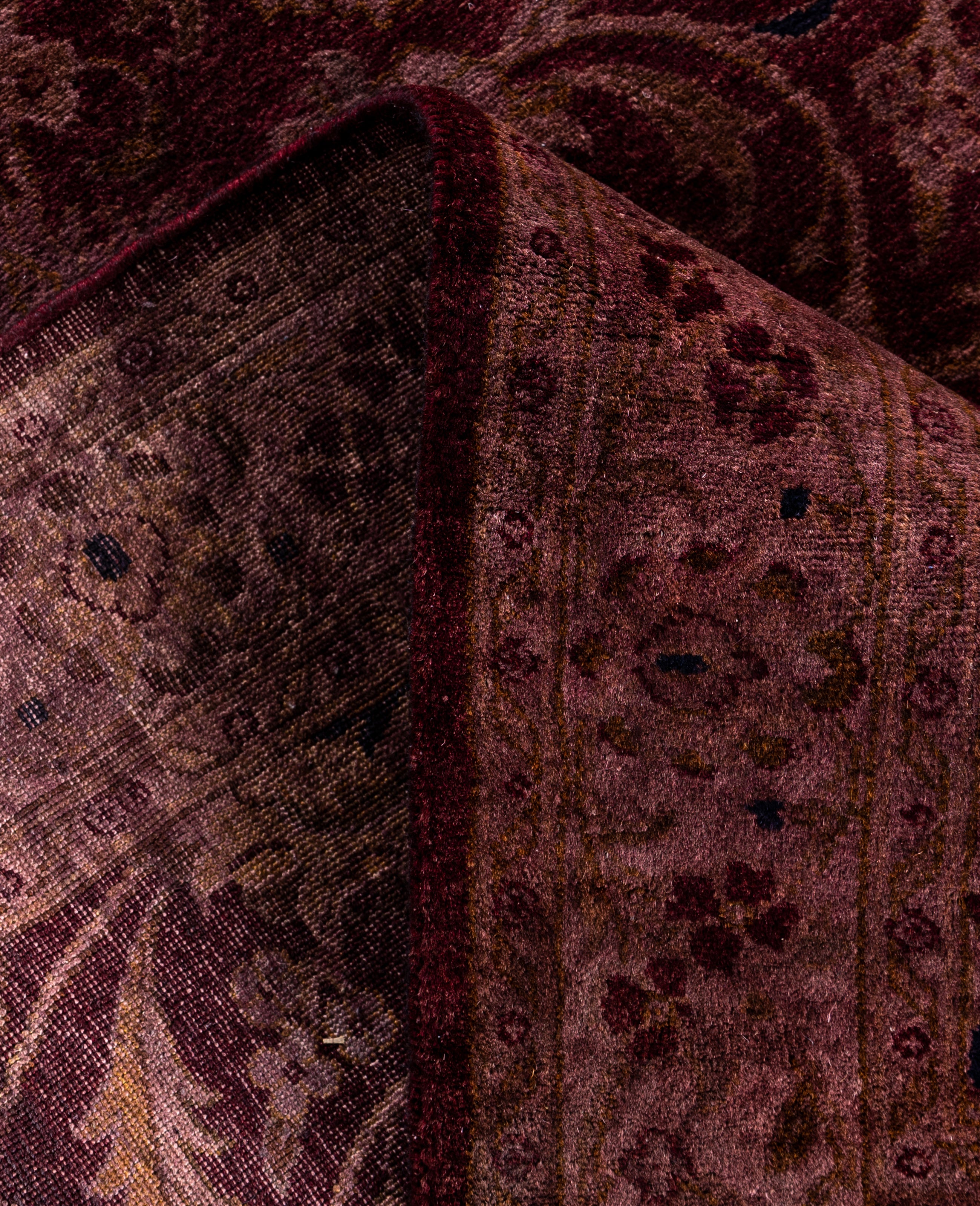 Over-dyed area rugs are created by taking vintage or traditional rugs and applying a vibrant, monochromatic dye over the existing patterns. This technique results in a bold, modern aesthetic while preserving the intricate designs beneath, blending the old with the new. The rugs are often faded and distressed before dyeing, which adds texture and depth to their appearance. The over-dye process breathes new life into worn or antique rugs, giving them a contemporary twist with rich, saturated colors like deep blues, purples, or bright reds. These rugs work well in both eclectic and modern spaces, offering a unique, artistic flair to any room. They provide a dynamic focal point, balancing between traditional craftsmanship and contemporary design trends. Over-dyed rugs are perfect for those looking to add a pop of color and character to their home decor.