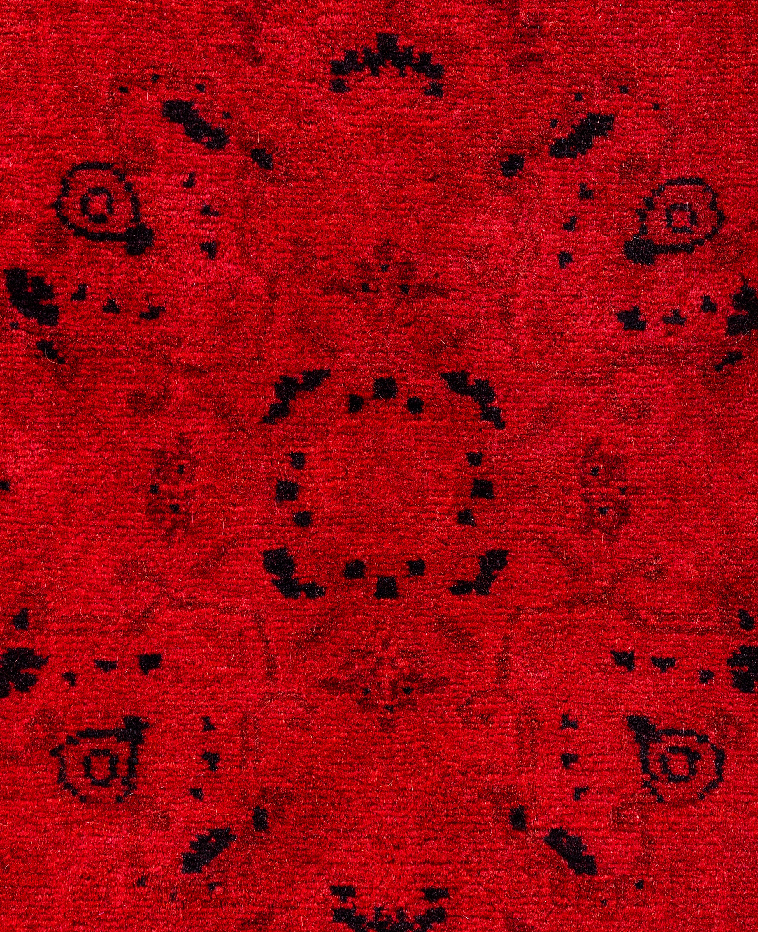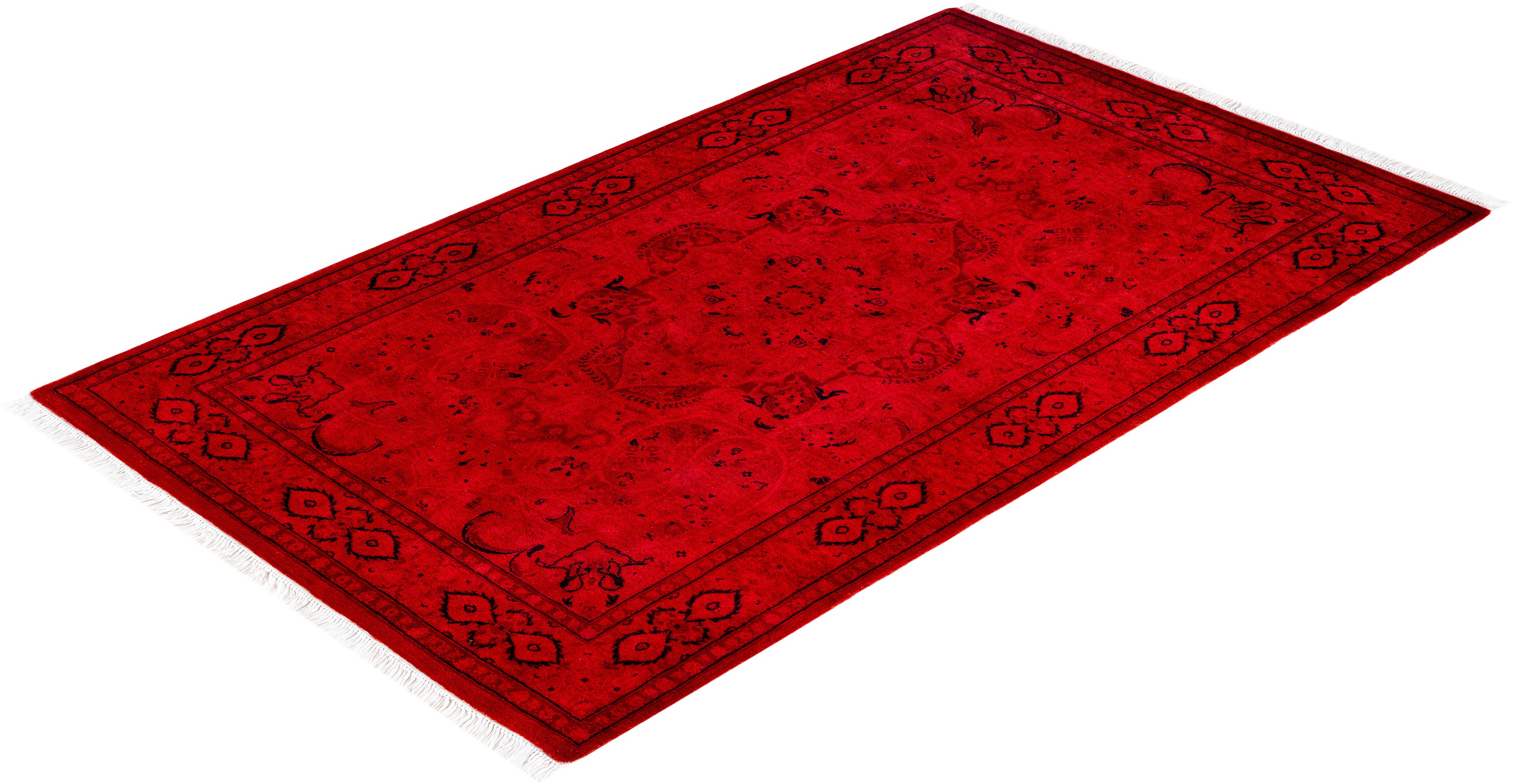 Contemporary Overdyed Wool Hand Knotted Red Area Rug 3' 2" x 5' 3"
