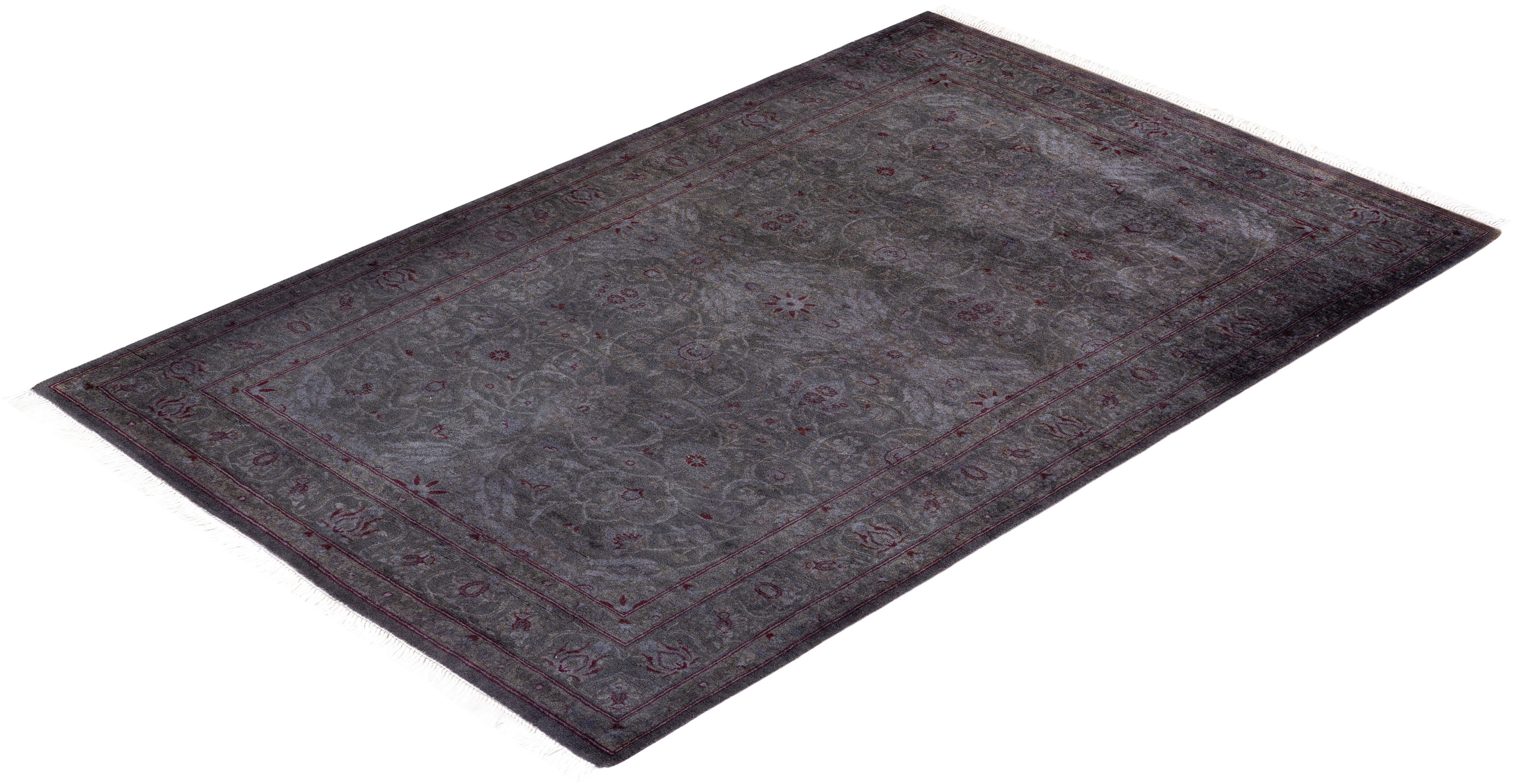 Contemporary Hand Knotted Overdyed Gray Area Rug 3' 4" x 5' 1"