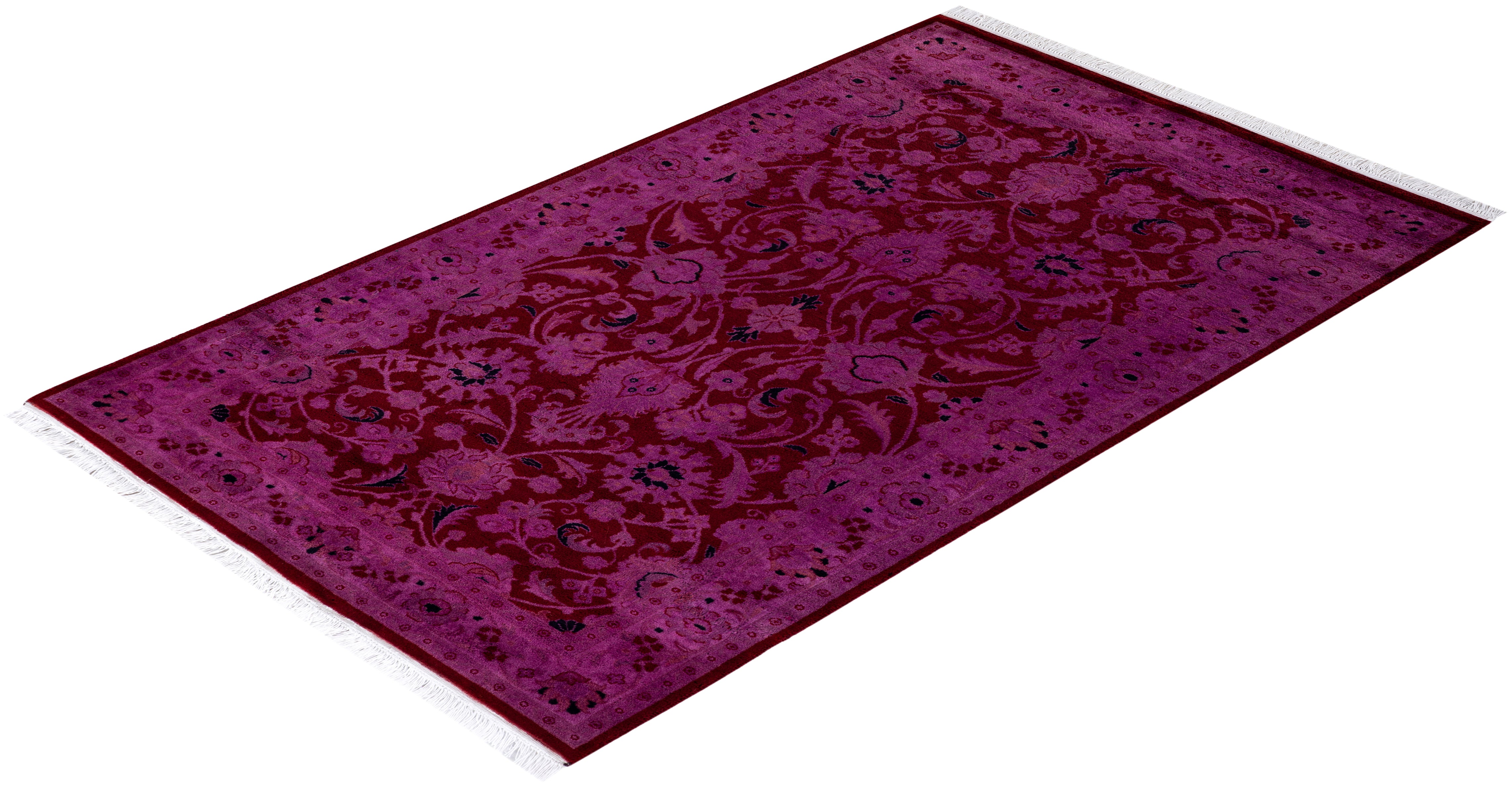Contemporary Hand Knotted Overdyed Pink Area Rug 3' 1" x 5' 1"