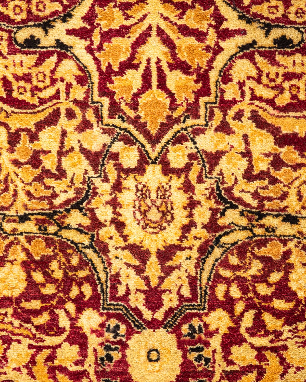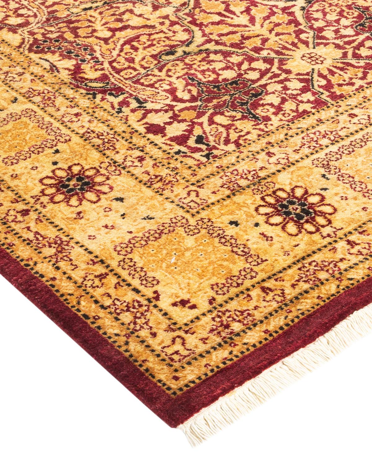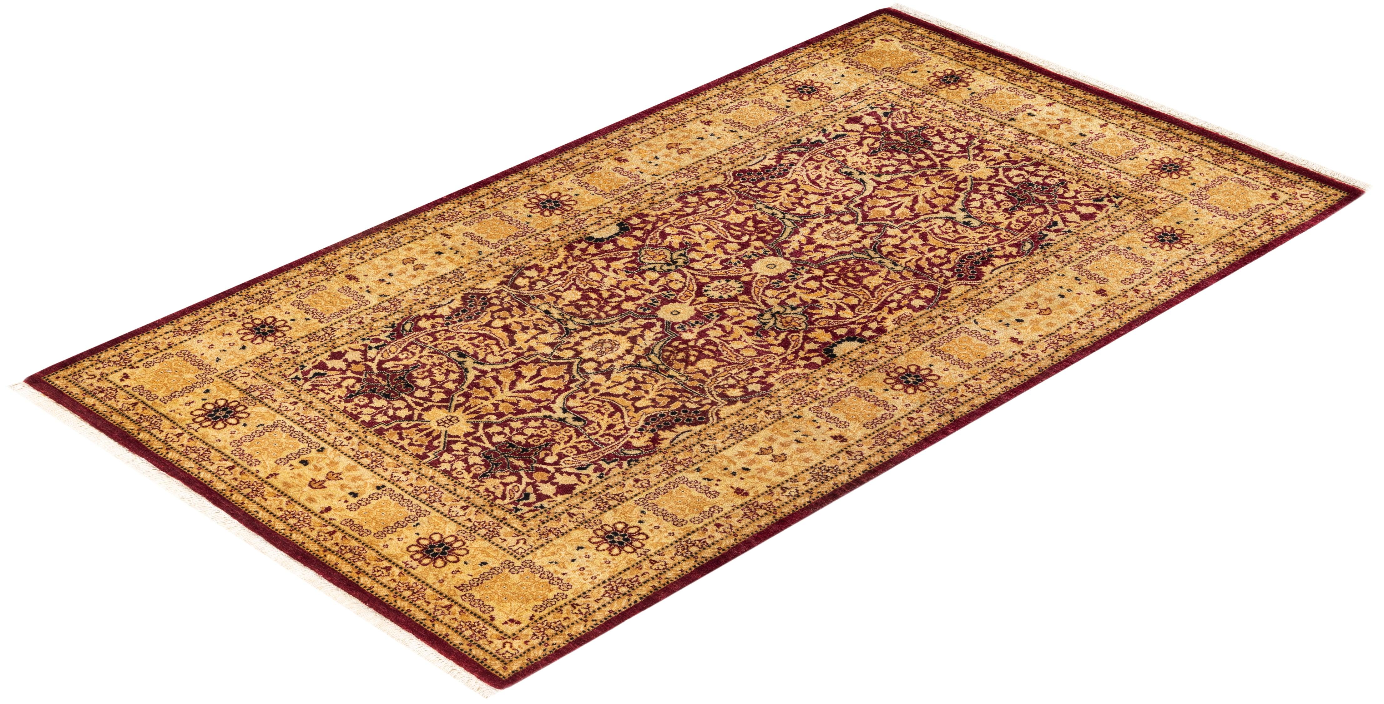 Traditional Hand Knotted Mogul Geometric Red Area Rug 3' 2" x 5' 7"