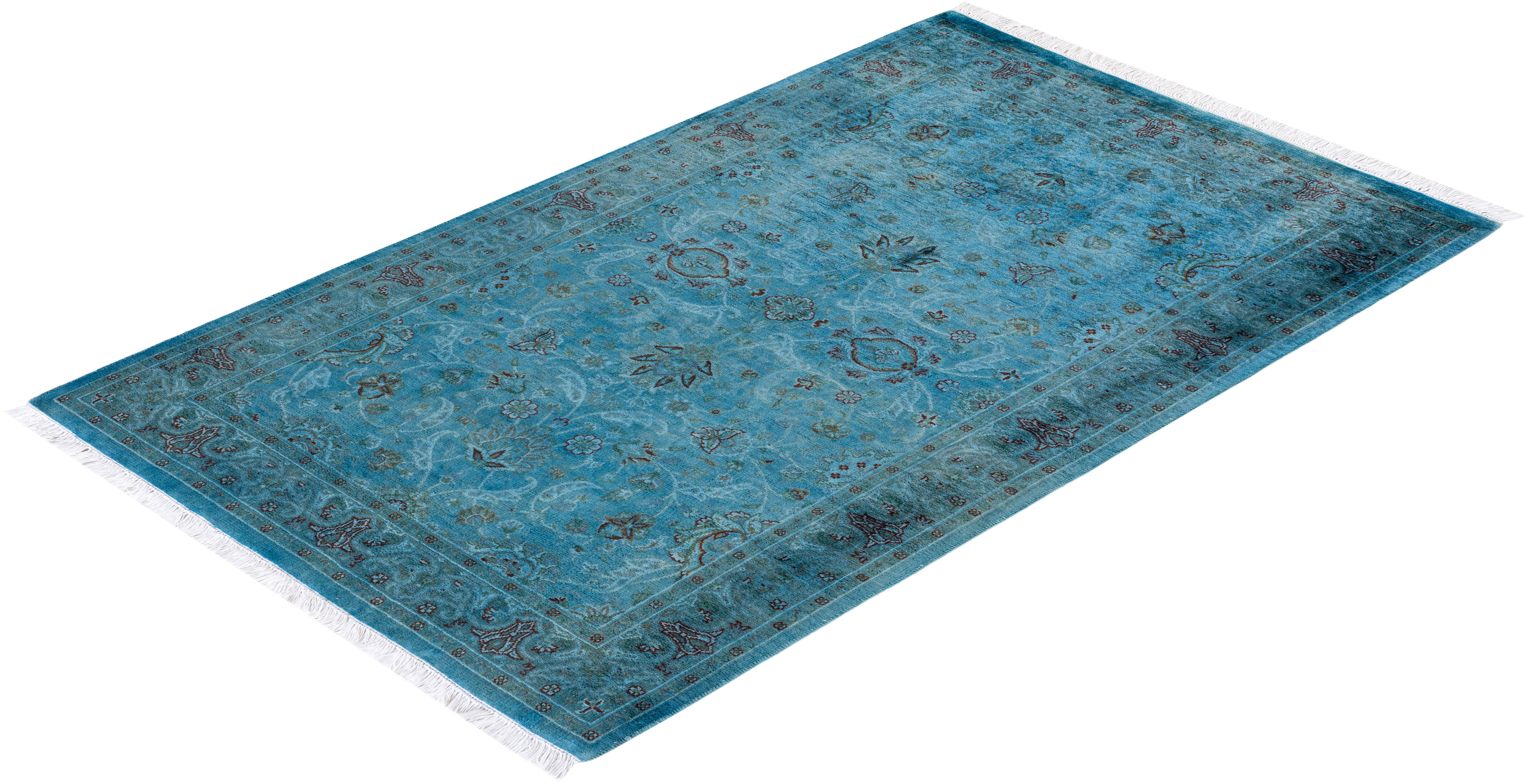 Contemporary Hand Knotted Overdyed Blue Area Rug 3' 2" x 5' 0"