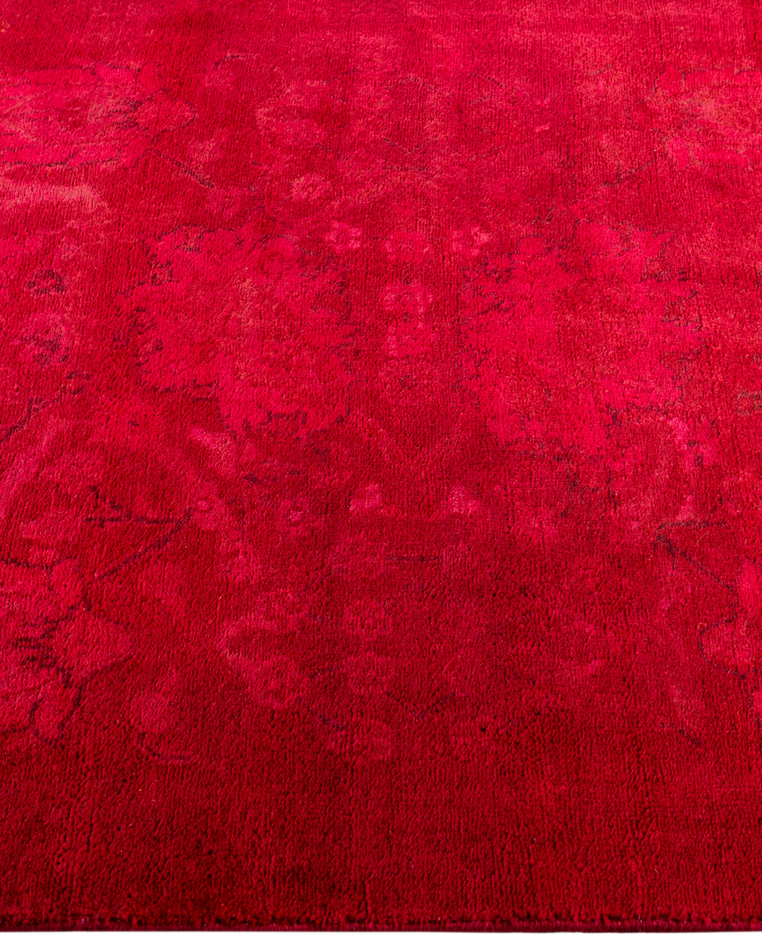 Over-dyed area rugs are created by taking vintage or traditional rugs and applying a vibrant, monochromatic dye over the existing patterns. This technique results in a bold, modern aesthetic while preserving the intricate designs beneath, blending the old with the new. The rugs are often faded and distressed before dyeing, which adds texture and depth to their appearance. The over-dye process breathes new life into worn or antique rugs, giving them a contemporary twist with rich, saturated colors like deep blues, purples, or bright reds. These rugs work well in both eclectic and modern spaces, offering a unique, artistic flair to any room. They provide a dynamic focal point, balancing between traditional craftsmanship and contemporary design trends. Over-dyed rugs are perfect for those looking to add a pop of color and character to their home decor.