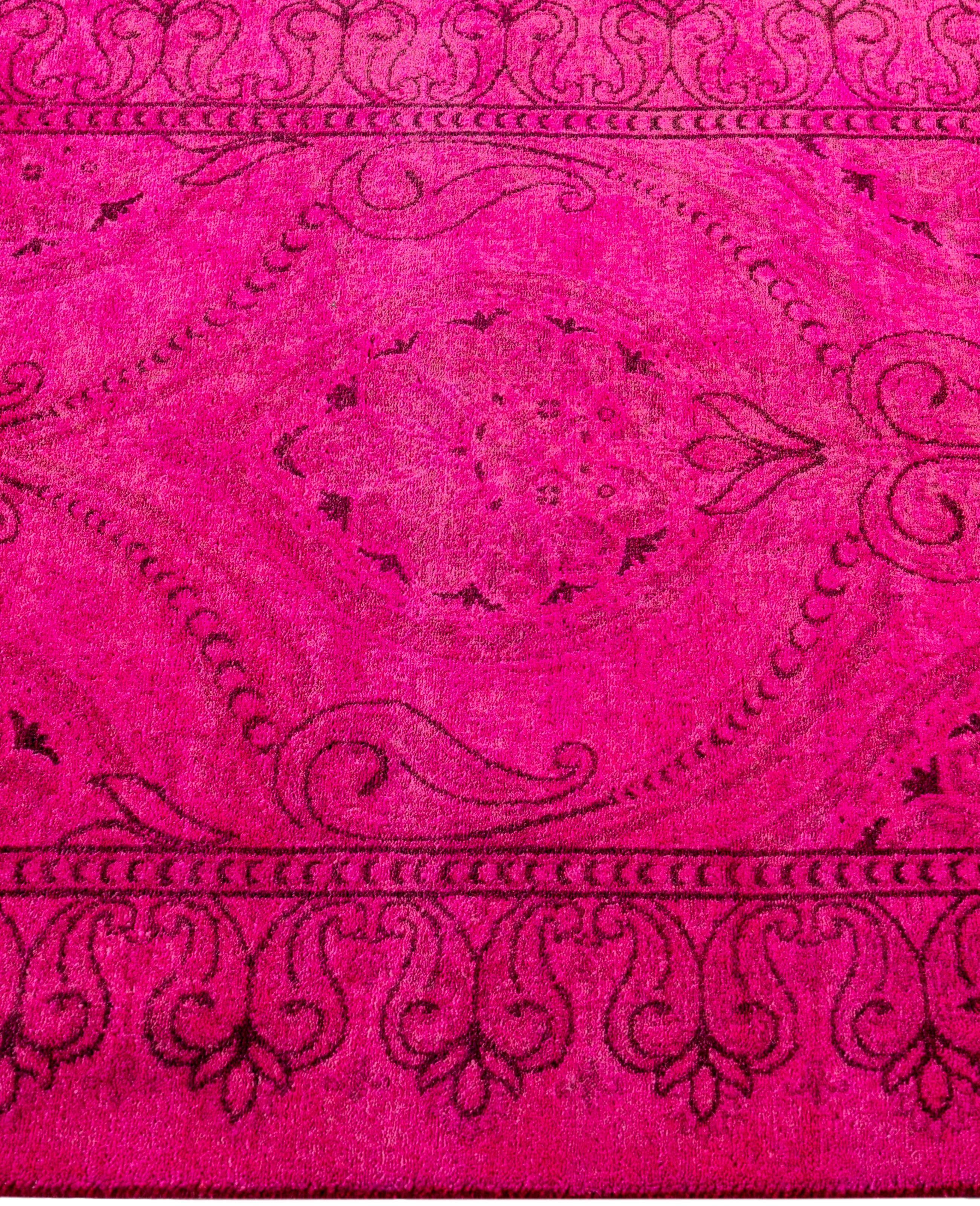 Over-dyed area rugs are created by taking vintage or traditional rugs and applying a vibrant, monochromatic dye over the existing patterns. This technique results in a bold, modern aesthetic while preserving the intricate designs beneath, blending the old with the new. The rugs are often faded and distressed before dyeing, which adds texture and depth to their appearance. The over-dye process breathes new life into worn or antique rugs, giving them a contemporary twist with rich, saturated colors like deep blues, purples, or bright reds. These rugs work well in both eclectic and modern spaces, offering a unique, artistic flair to any room. They provide a dynamic focal point, balancing between traditional craftsmanship and contemporary design trends. Over-dyed rugs are perfect for those looking to add a pop of color and character to their home decor.