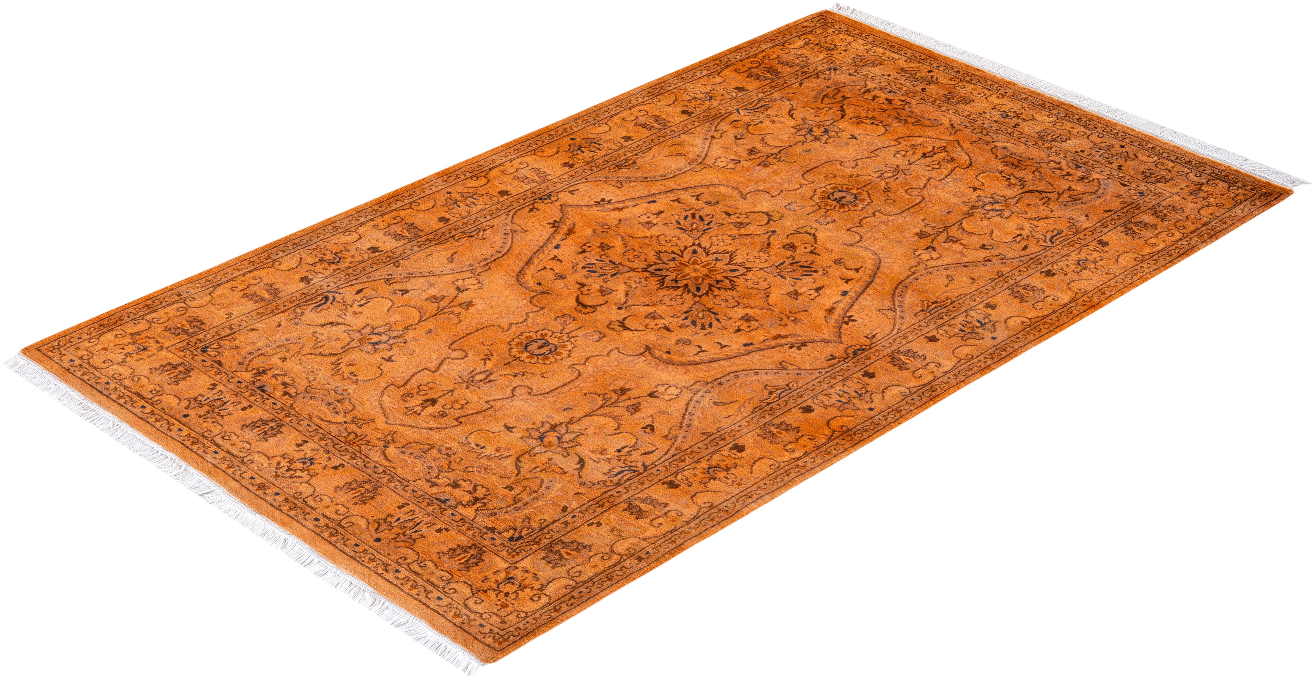 Contemporary Hand-Knotted Overdyed Gold Area Rug 3' 1" x 5' 3"