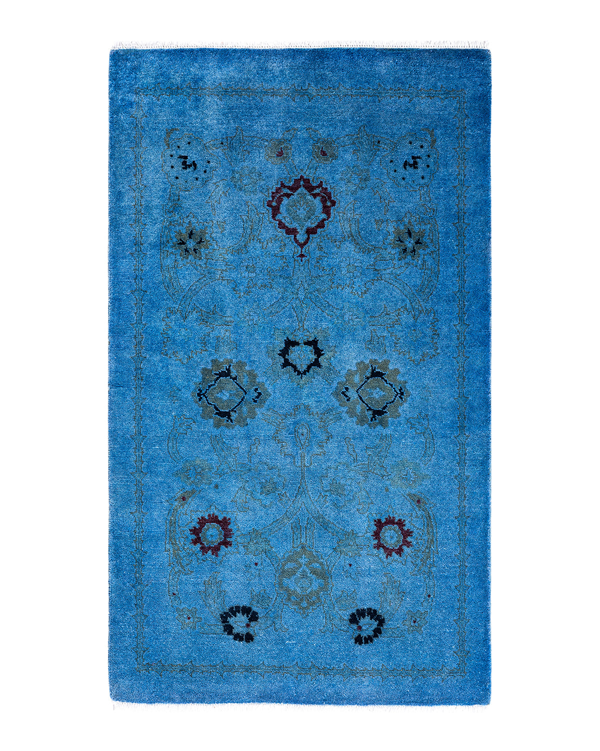 Contemporary Hand-Knotted Overdyed Blue Area Rug 2' 6" x 4' 3"