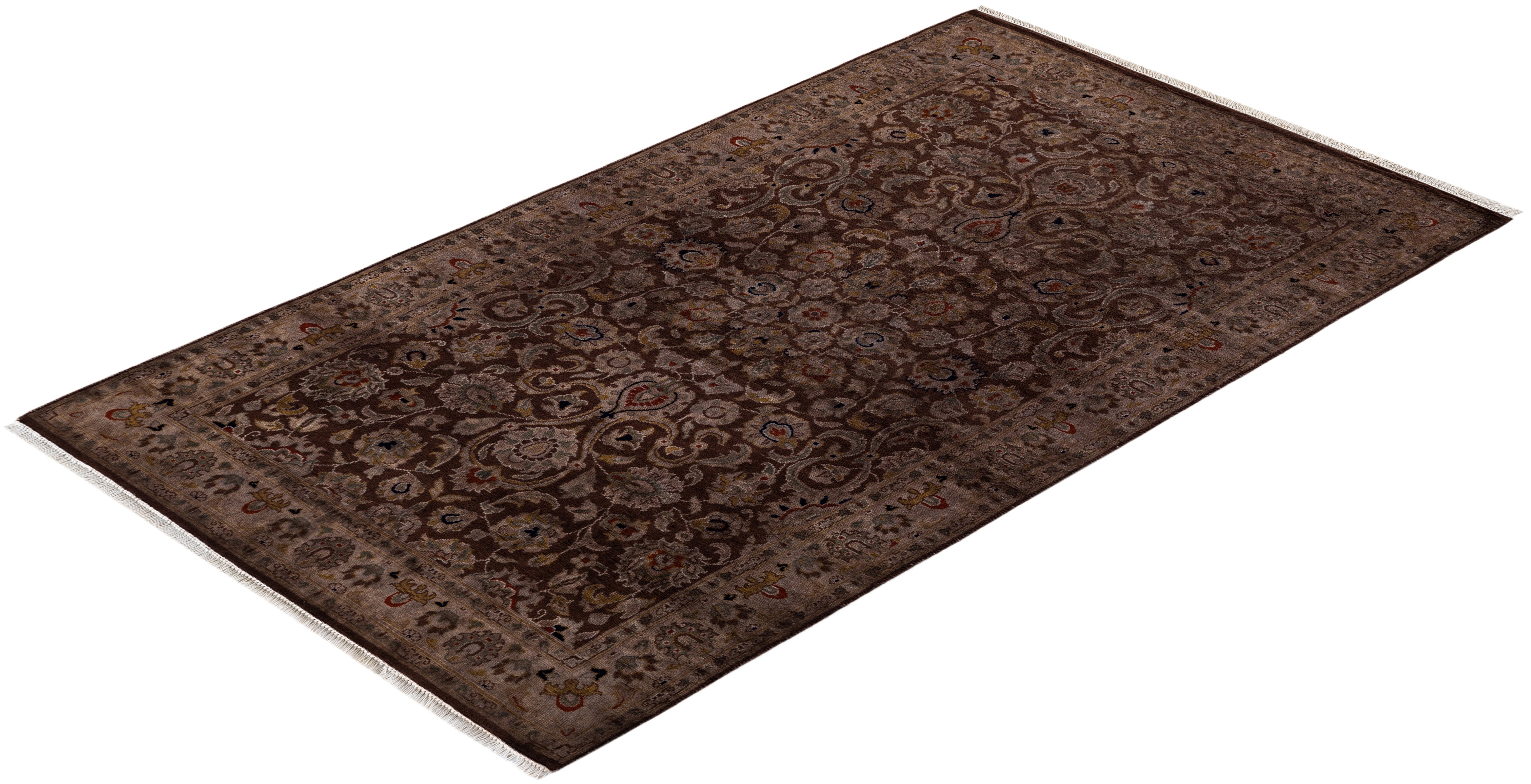 Contemporary Hand Knotted Brown Area Rug 3' 2" x 5' 5"