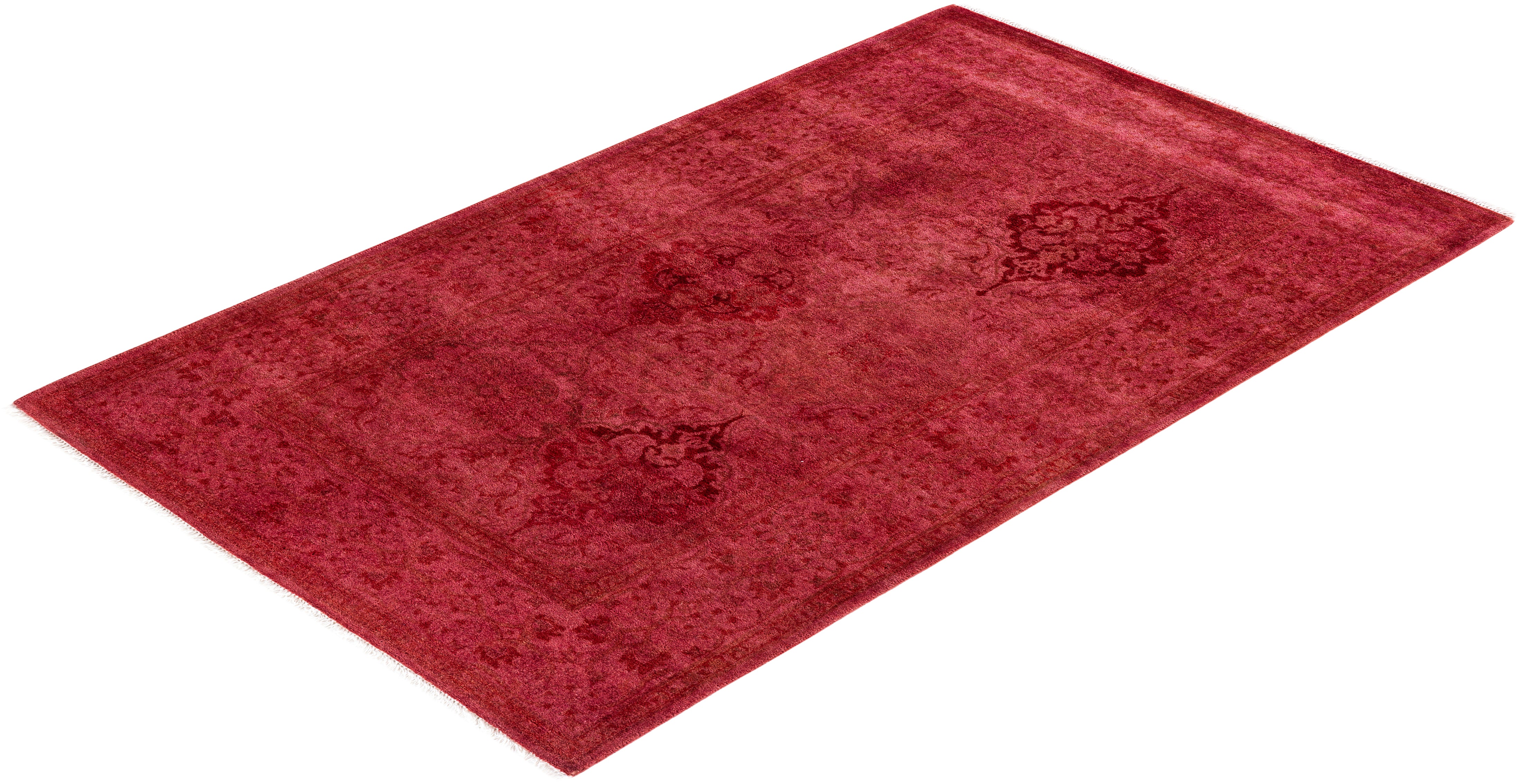 Contemporary Hand-Knotted Overdyed Pink Area Rug 3' 2" x 5' 3"