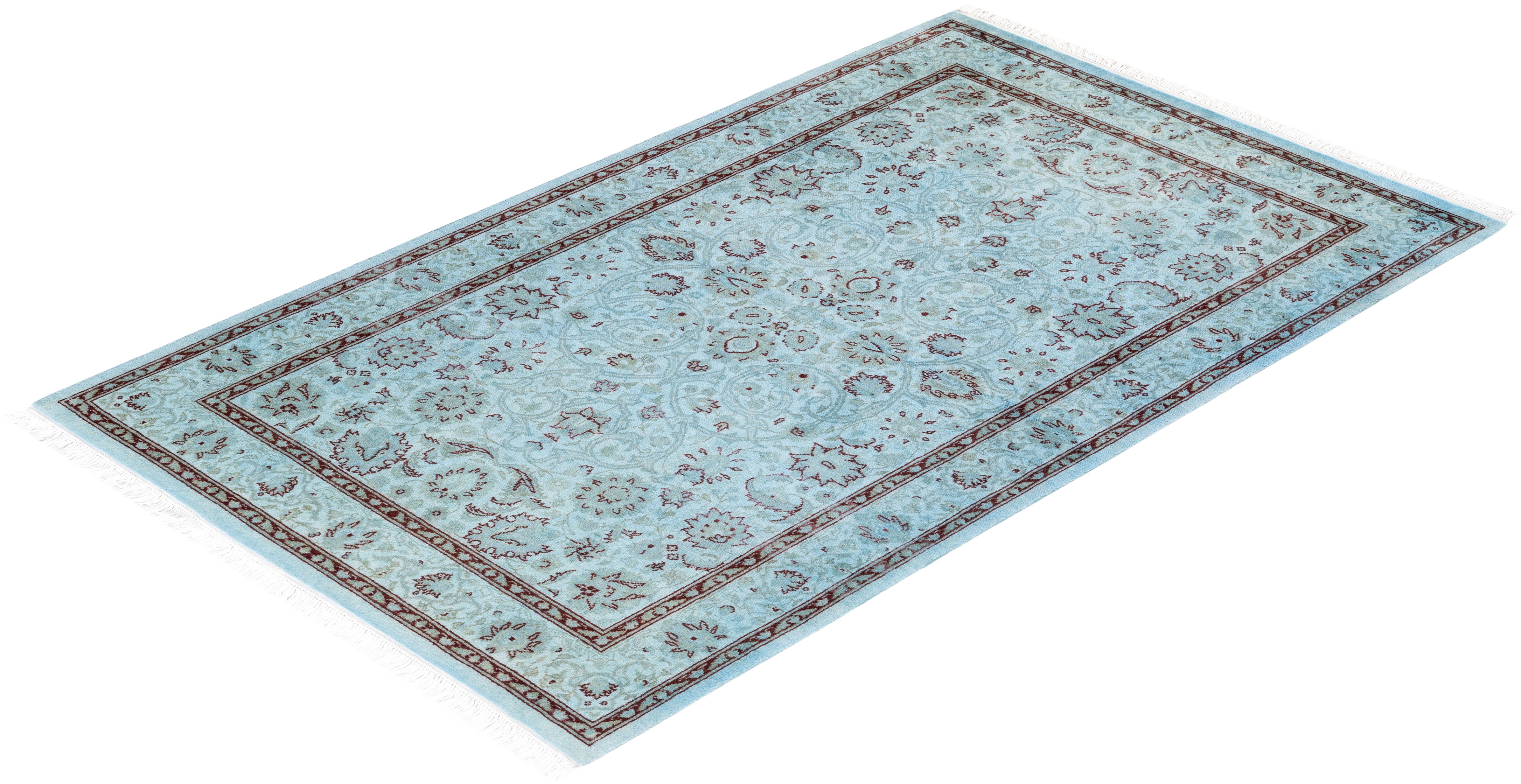 Contemporary Hand Knotted Overdyed Blue Area Rug 3' 2" x 5' 4"