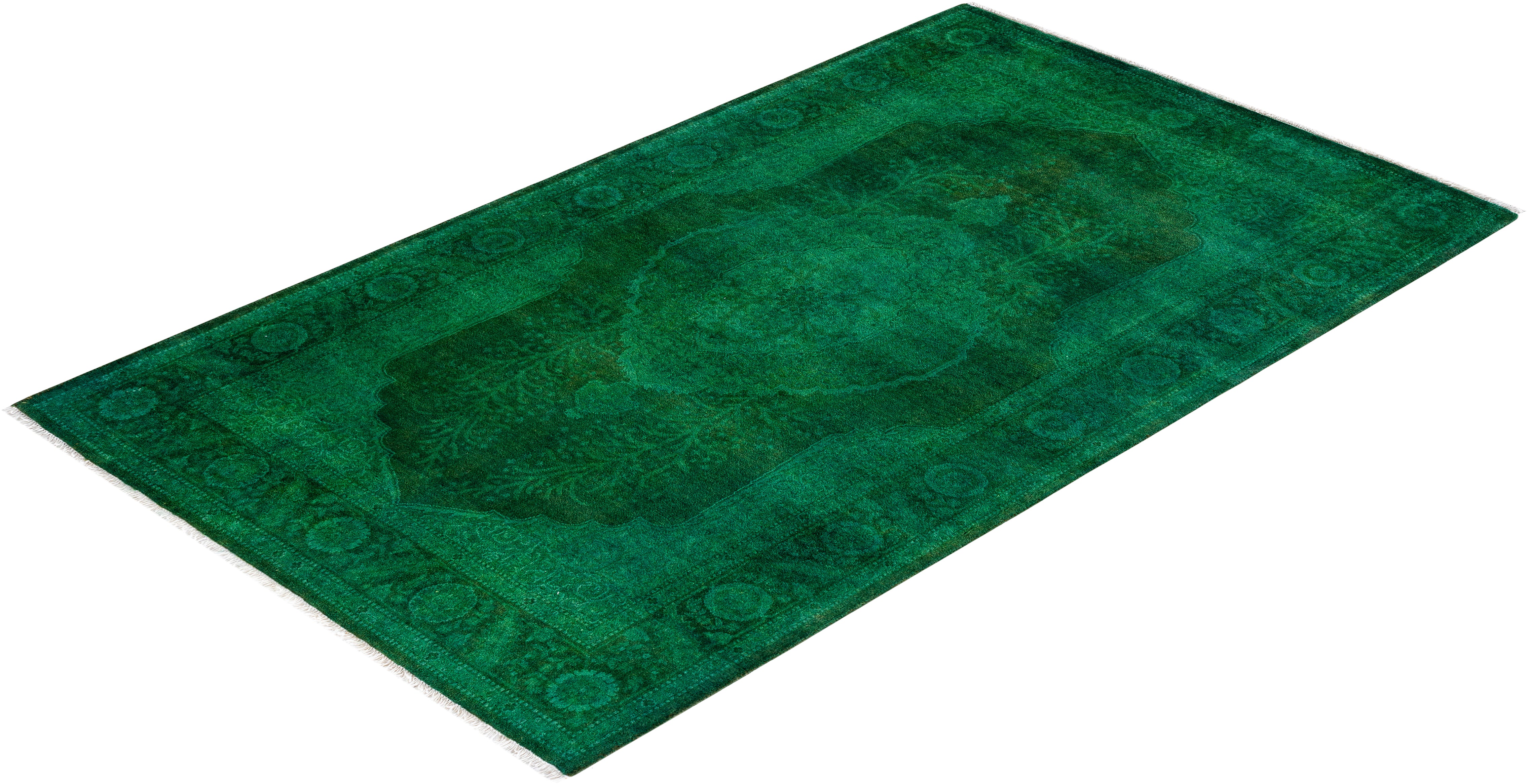 Contemporary Hand-Knotted Overdyed Green Area Rug 3' 1" x 5' 3"