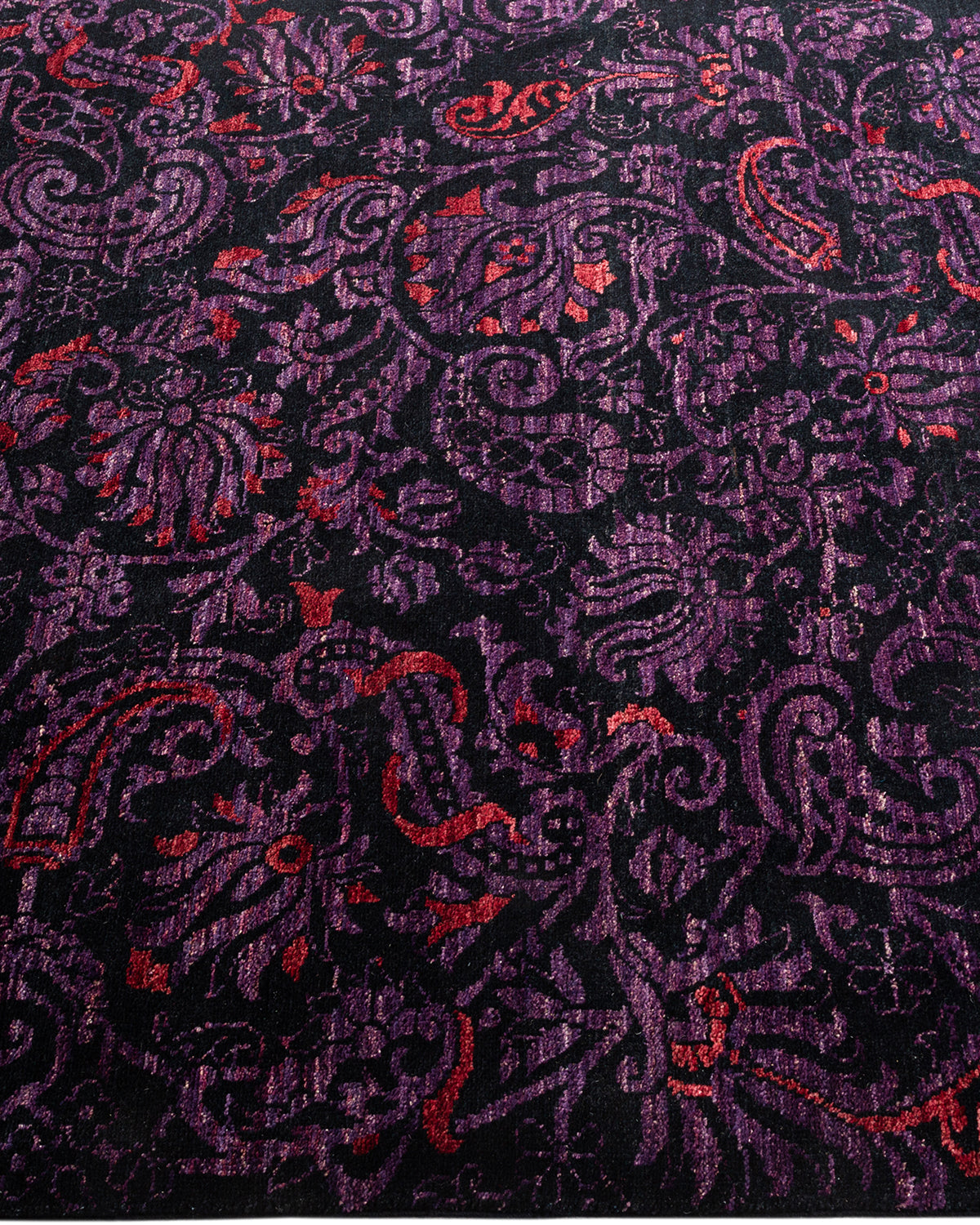 The meticulous art of hand-embroidered textiles from Uzbekistan tribes inspired the Suzani Collection of rugs. Bold motifs, particularly pomegranates, the sun, and the moon, are frequent elements, their simple yet compelling designs made even more spectacular in wool and silk. Once traditional pieces of a dowry, these rugs will easily become part of families for years to come.
