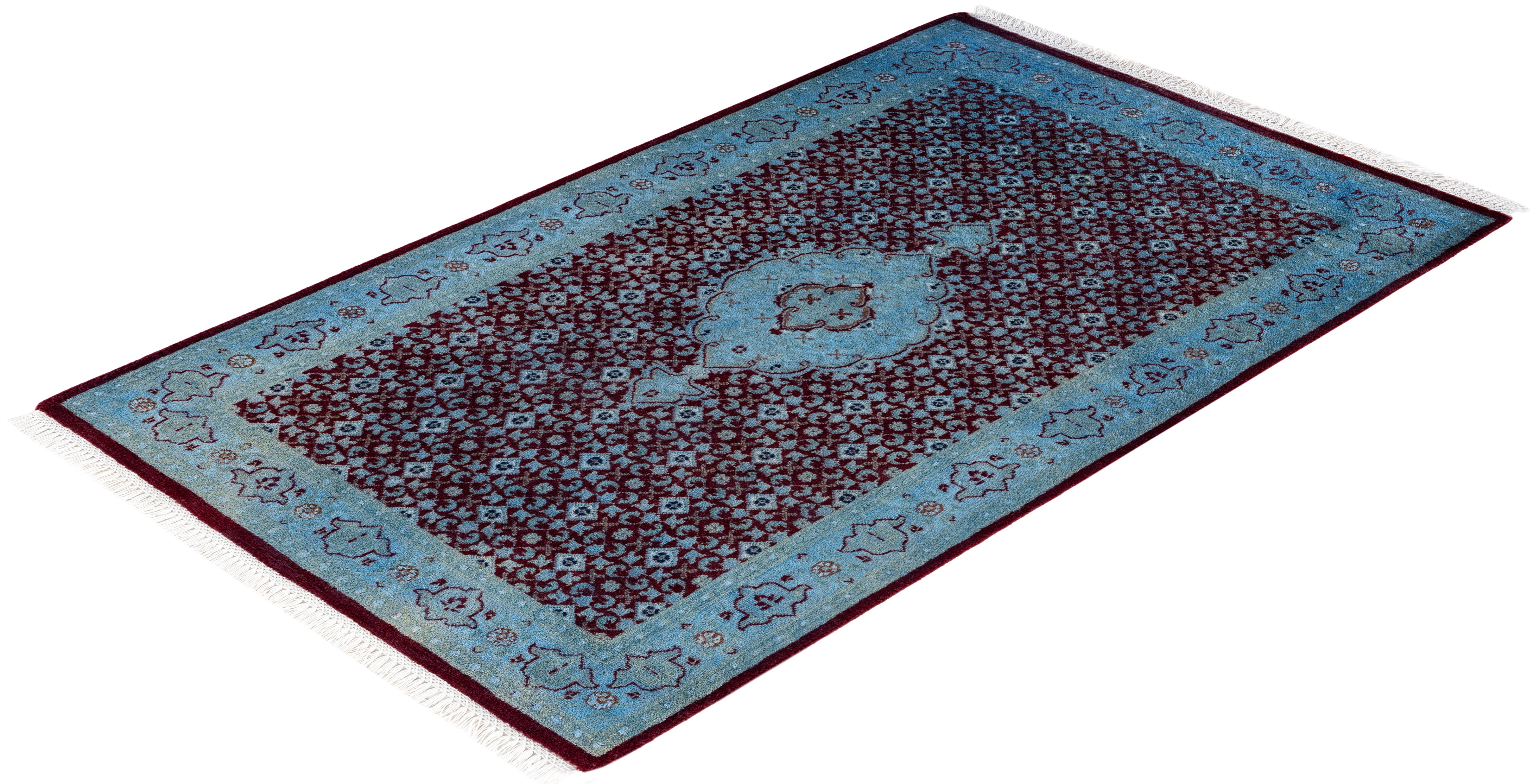 Contemporary Overdyed Wool Hand Knotted Red Area Rug 3' 3" x 5' 4"