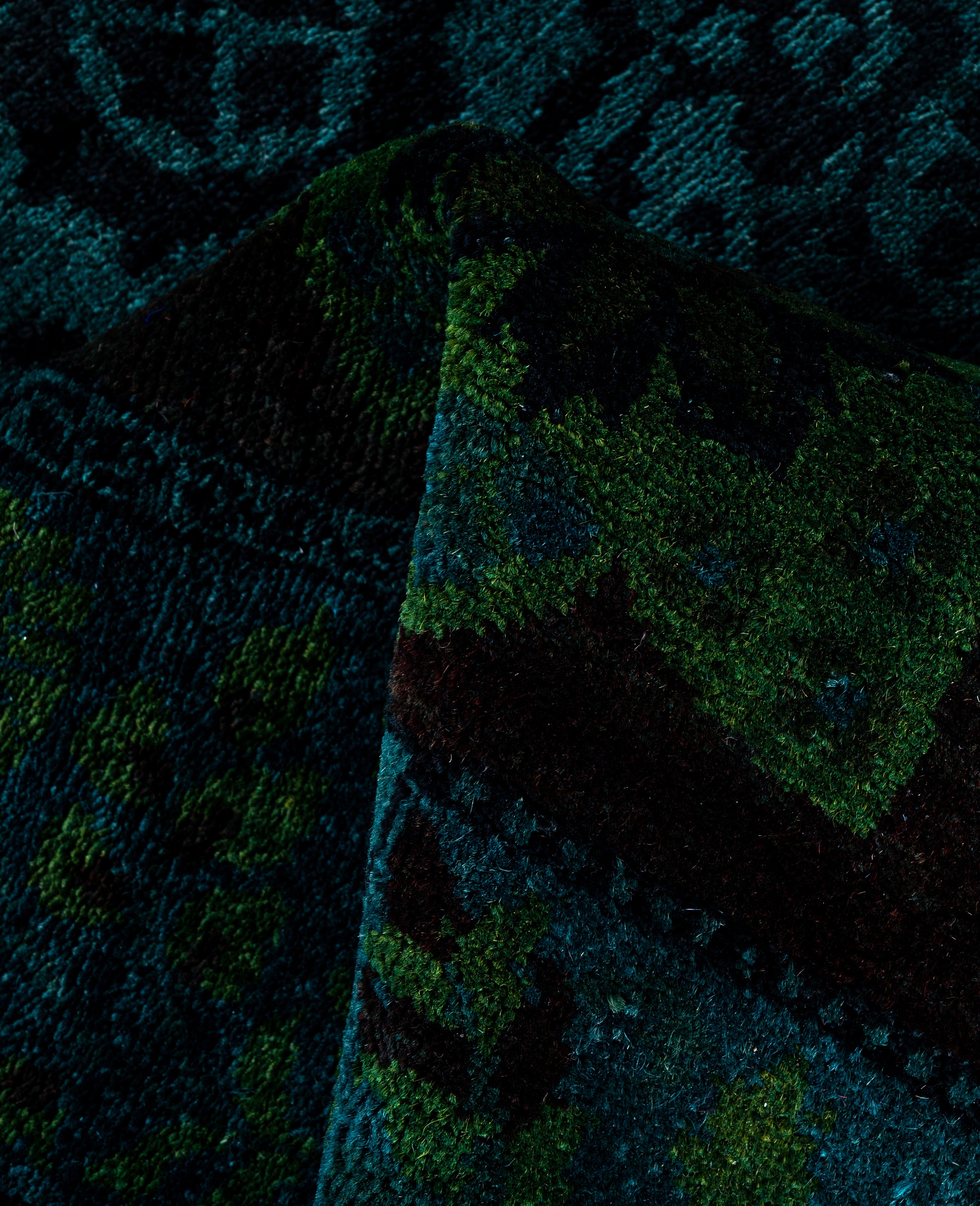 Over-dyed area rugs are created by taking vintage or traditional rugs and applying a vibrant, monochromatic dye over the existing patterns. This technique results in a bold, modern aesthetic while preserving the intricate designs beneath, blending the old with the new. The rugs are often faded and distressed before dyeing, which adds texture and depth to their appearance. The over-dye process breathes new life into worn or antique rugs, giving them a contemporary twist with rich, saturated colors like deep blues, purples, or bright reds. These rugs work well in both eclectic and modern spaces, offering a unique, artistic flair to any room. They provide a dynamic focal point, balancing between traditional craftsmanship and contemporary design trends. Over-dyed rugs are perfect for those looking to add a pop of color and character to their home decor.