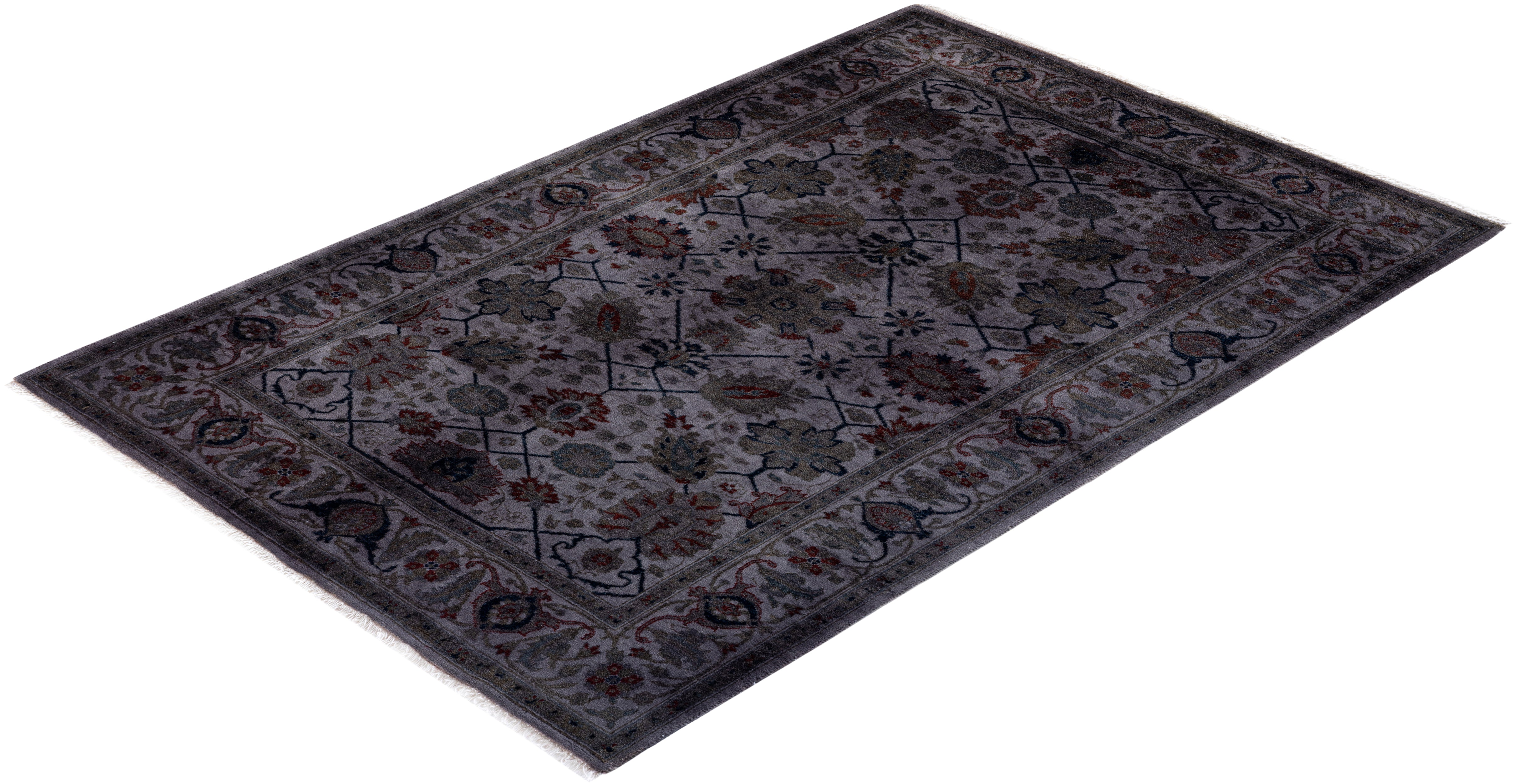 Contemporary Hand Knotted Overdyed Gray Area Rug 3' 4" x 5' 0"