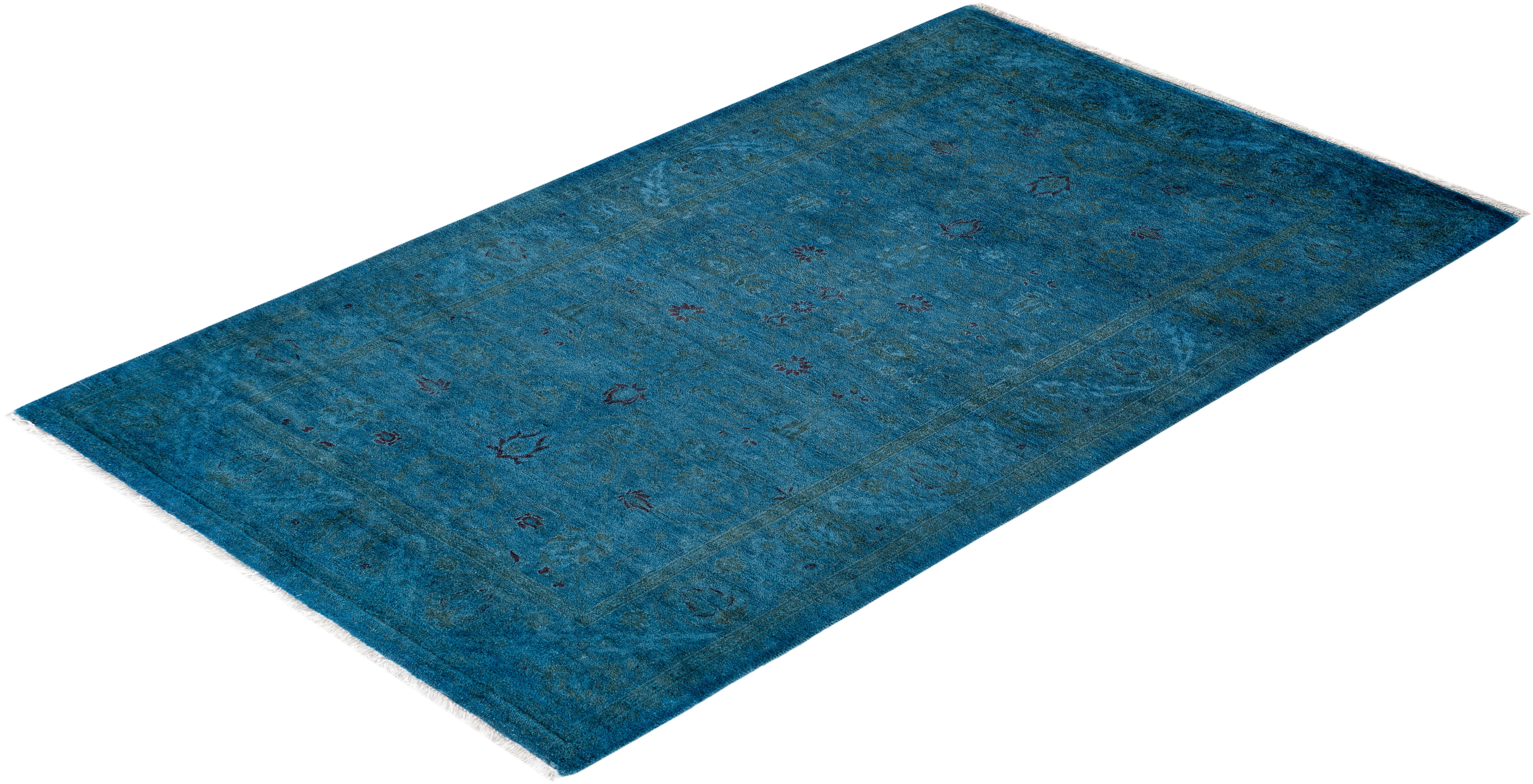 Contemporary Hand-Knotted Overdyed Blue Area Rug 3' 2" x 5' 3"
