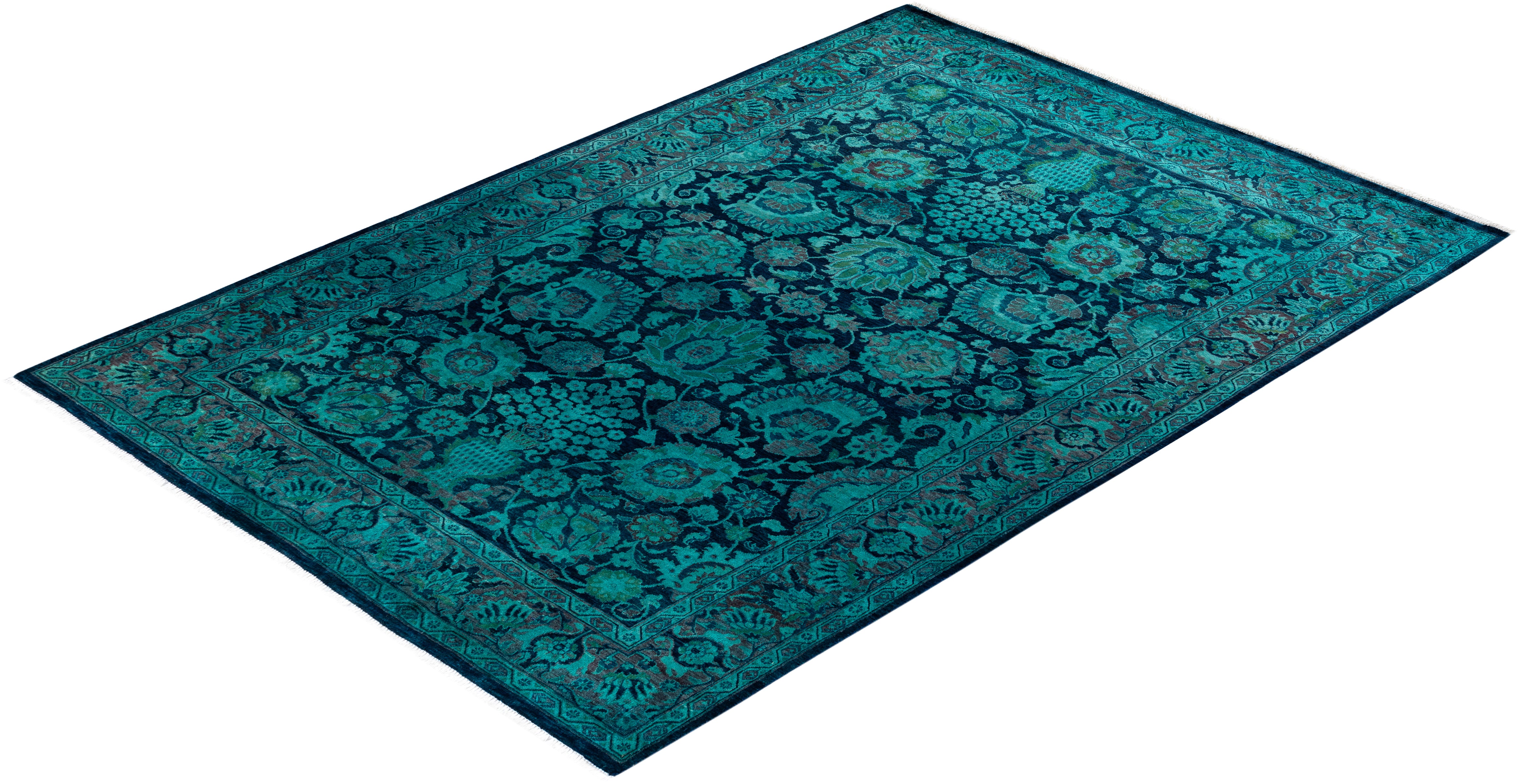 Contemporary Hand Knotted Overdyed Navy Area Rug 4' 2" x 6' 1"