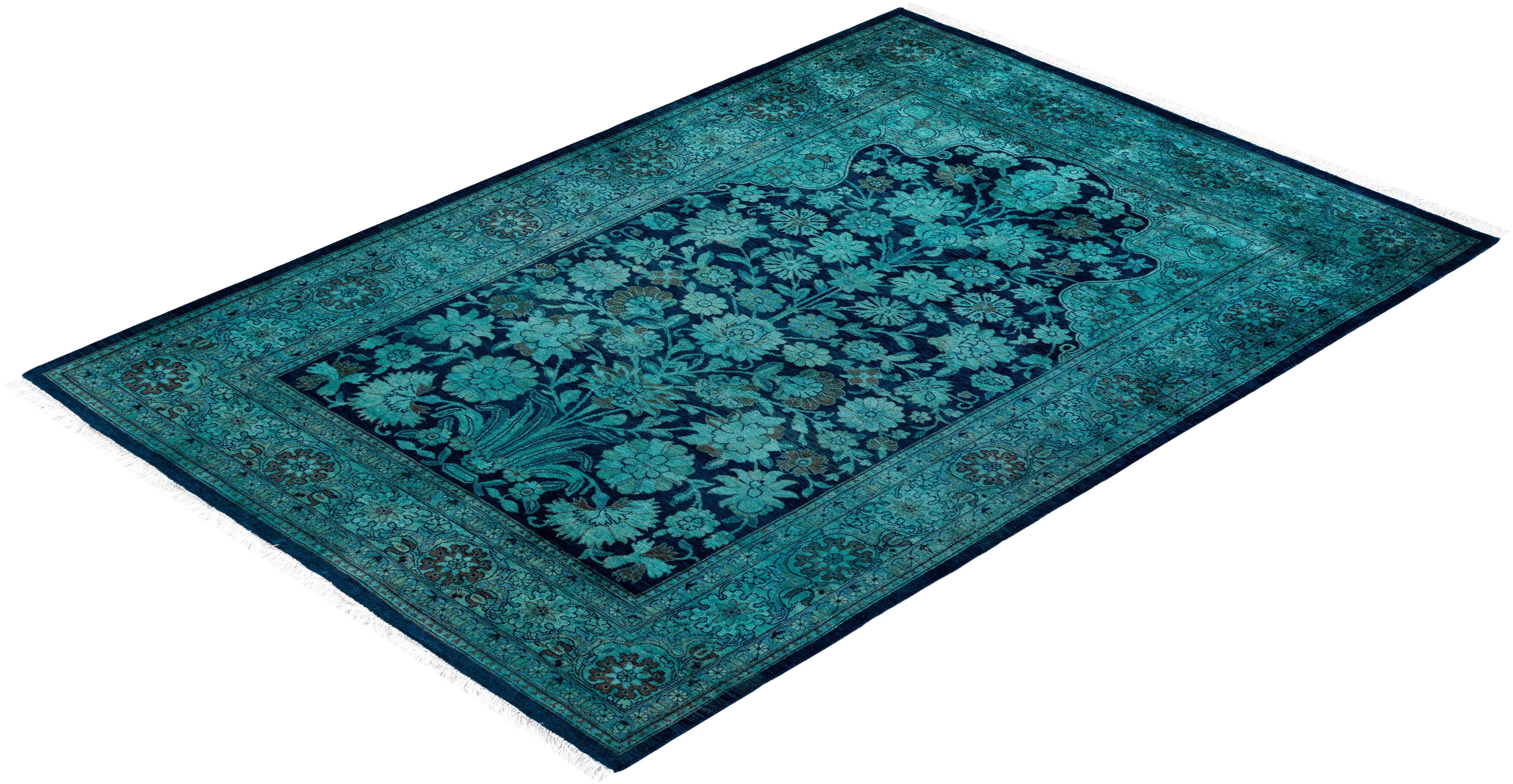 Contemporary Hand Knotted Overdyed Blue Area Rug 4' 2" x 6' 2"