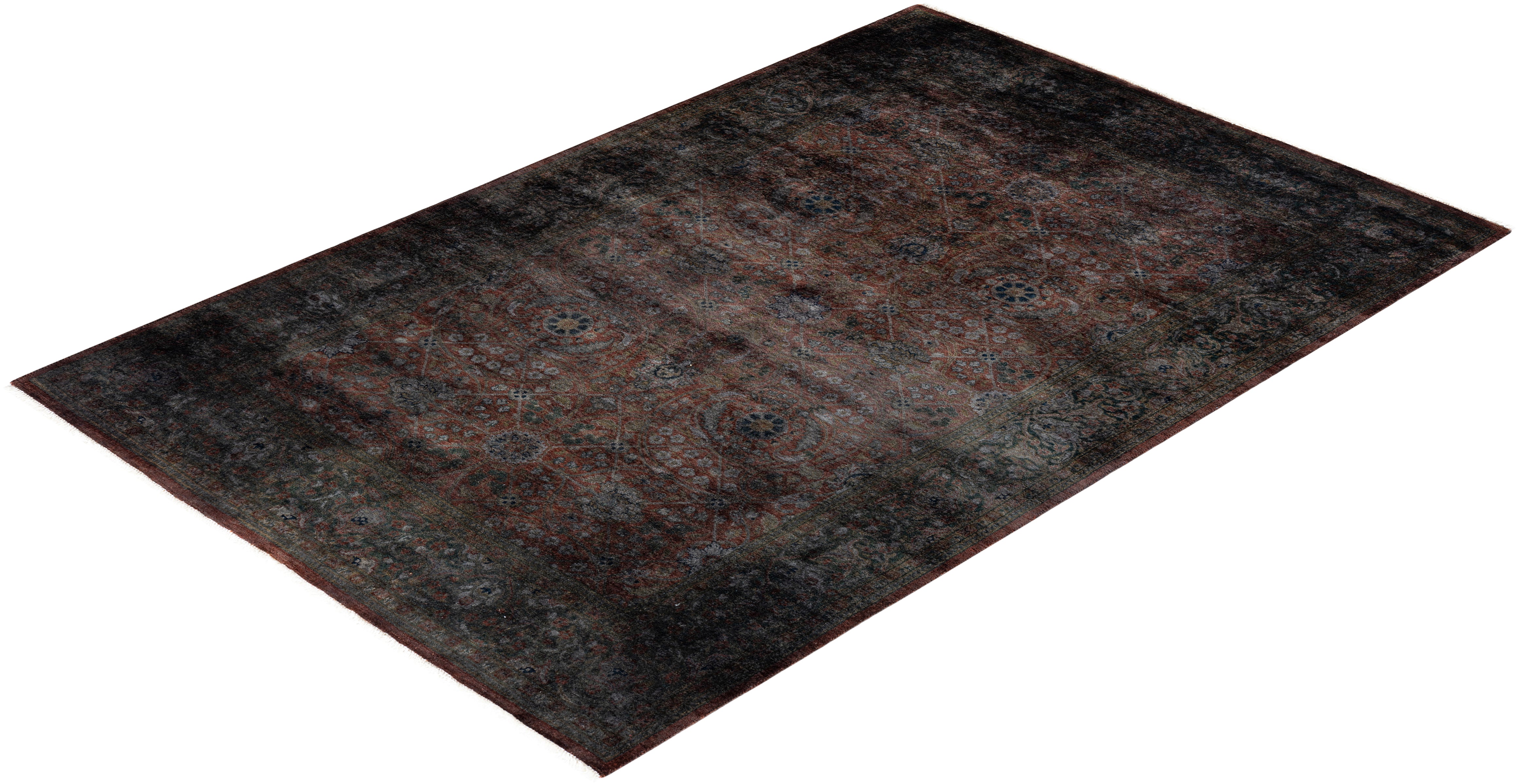 Contemporary Hand Knotted Overdyed Brown Area Rug 4' 1" x 6' 1"