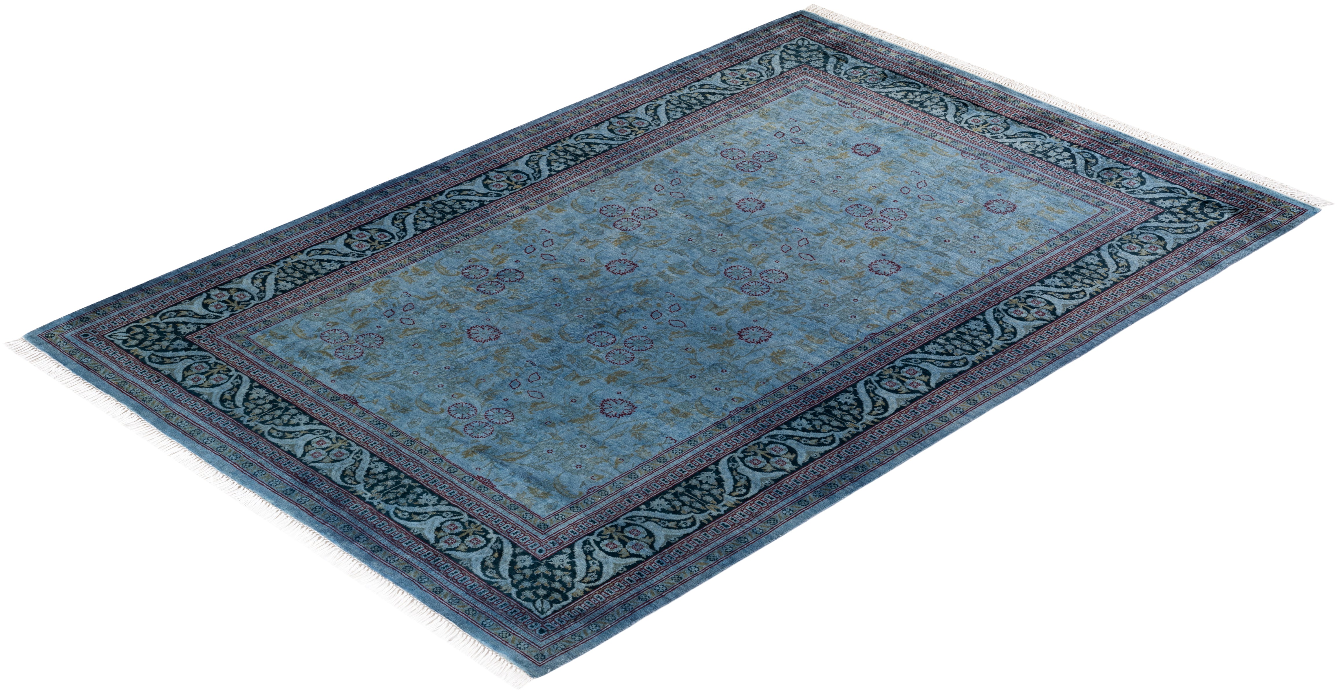 Contemporary Hand Knotted Overdyed Blue Area Rug 4' 2" x 6' 2"