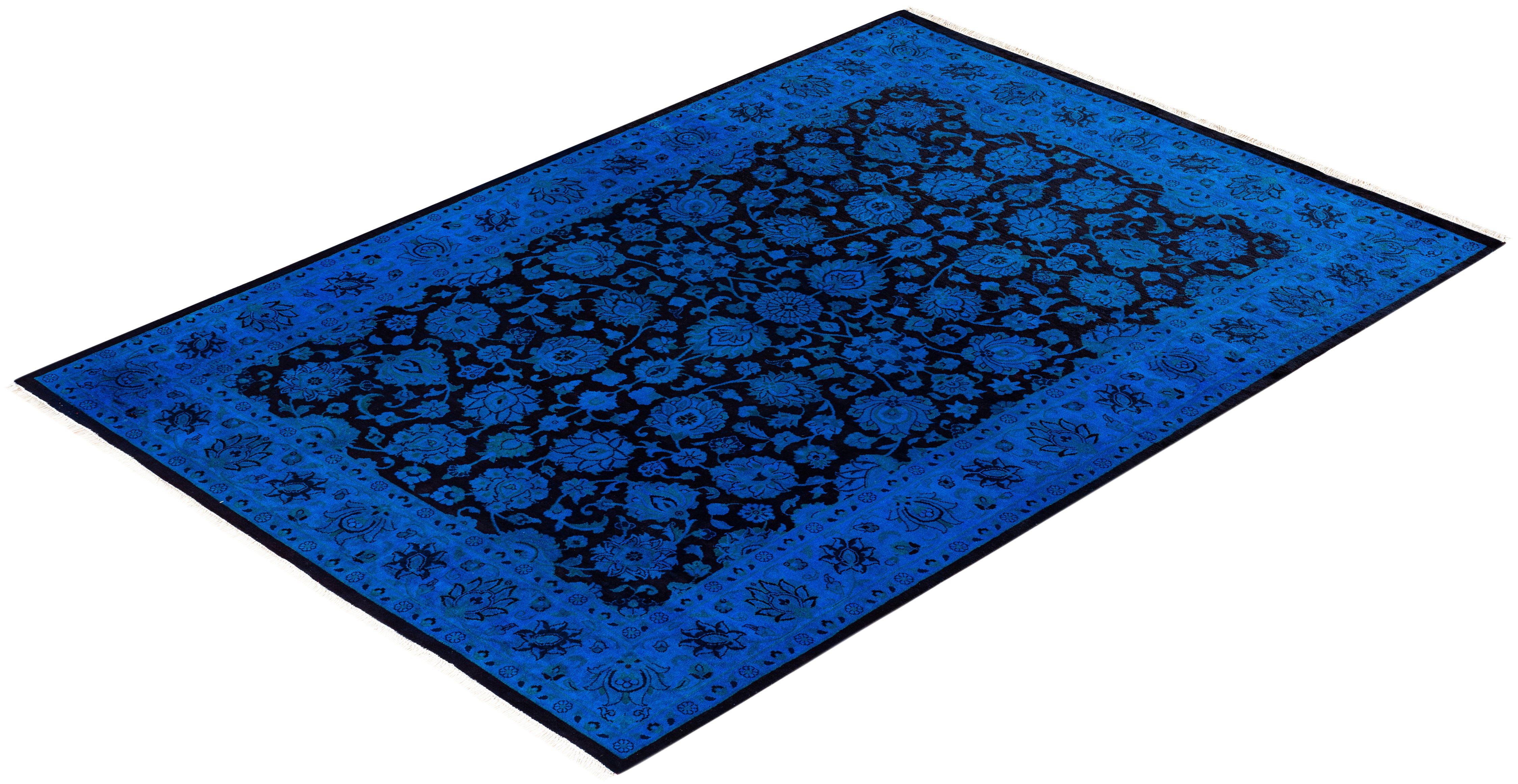 Contemporary Hand Knotted Overdyed Blue Area Rug 4' 2" x 6' 0"
