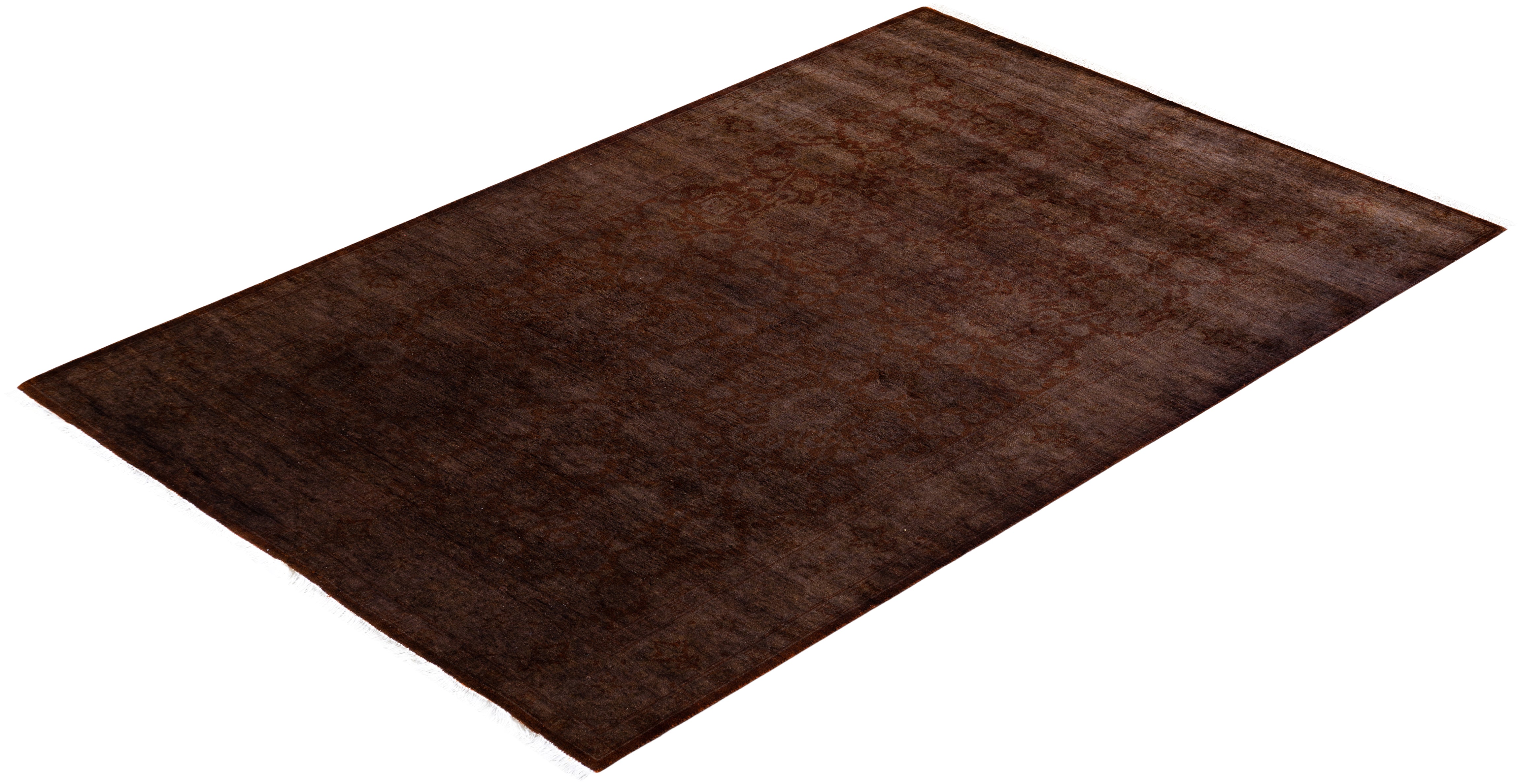 Contemporary Hand Knotted Overdyed Brown Area Rug 4' 2" x 6' 6"