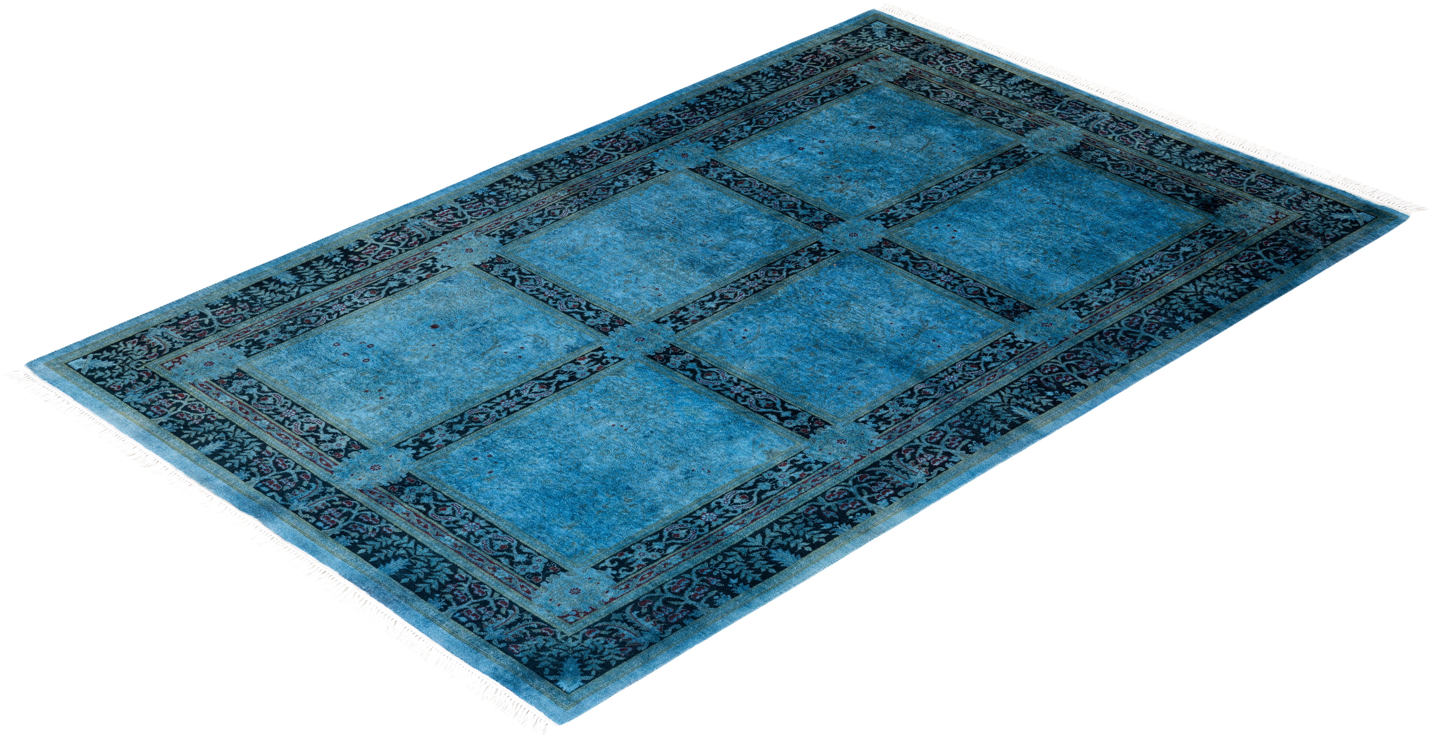 Contemporary Hand Knotted Overdyed Blue Area Rug 4' 1" x 6' 4"