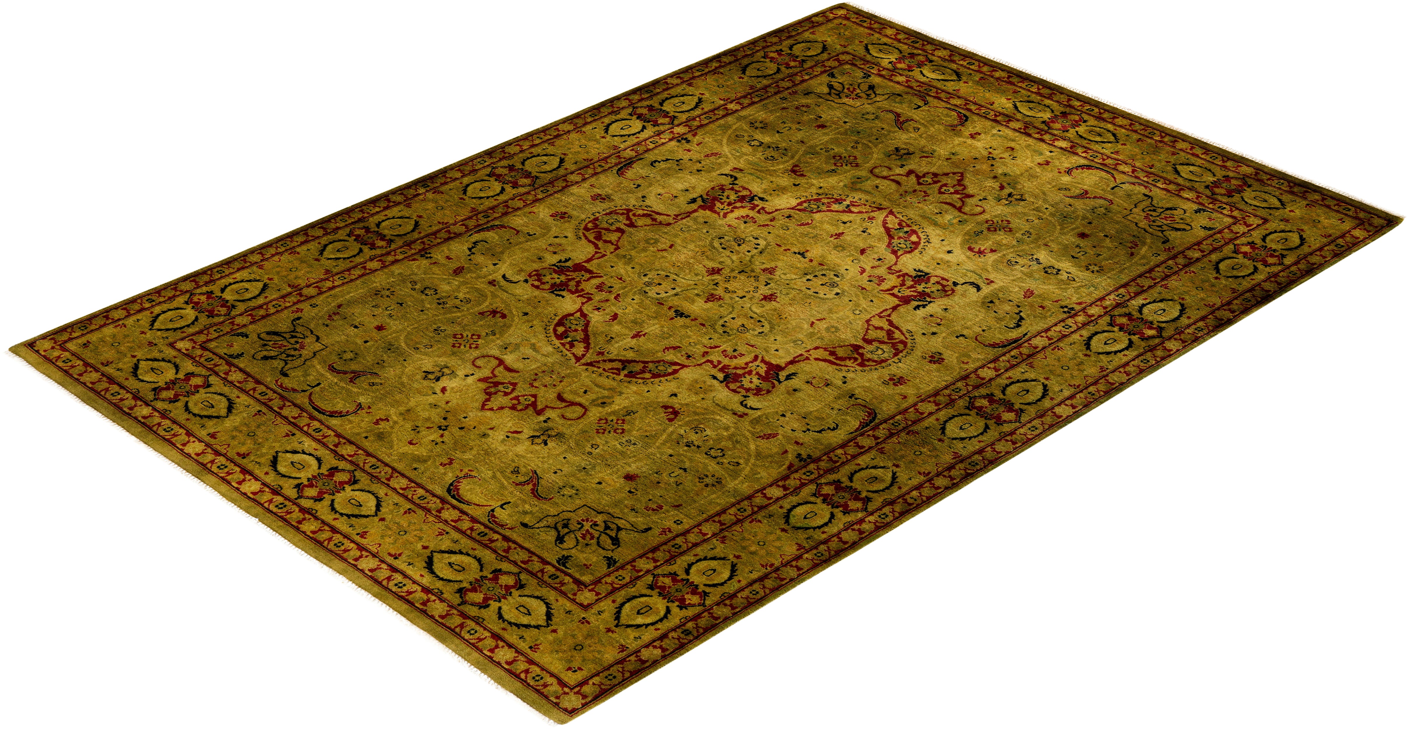 Contemporary Hand Knotted Overdyed Gold Area Rug 4' 2" x 6' 1"
