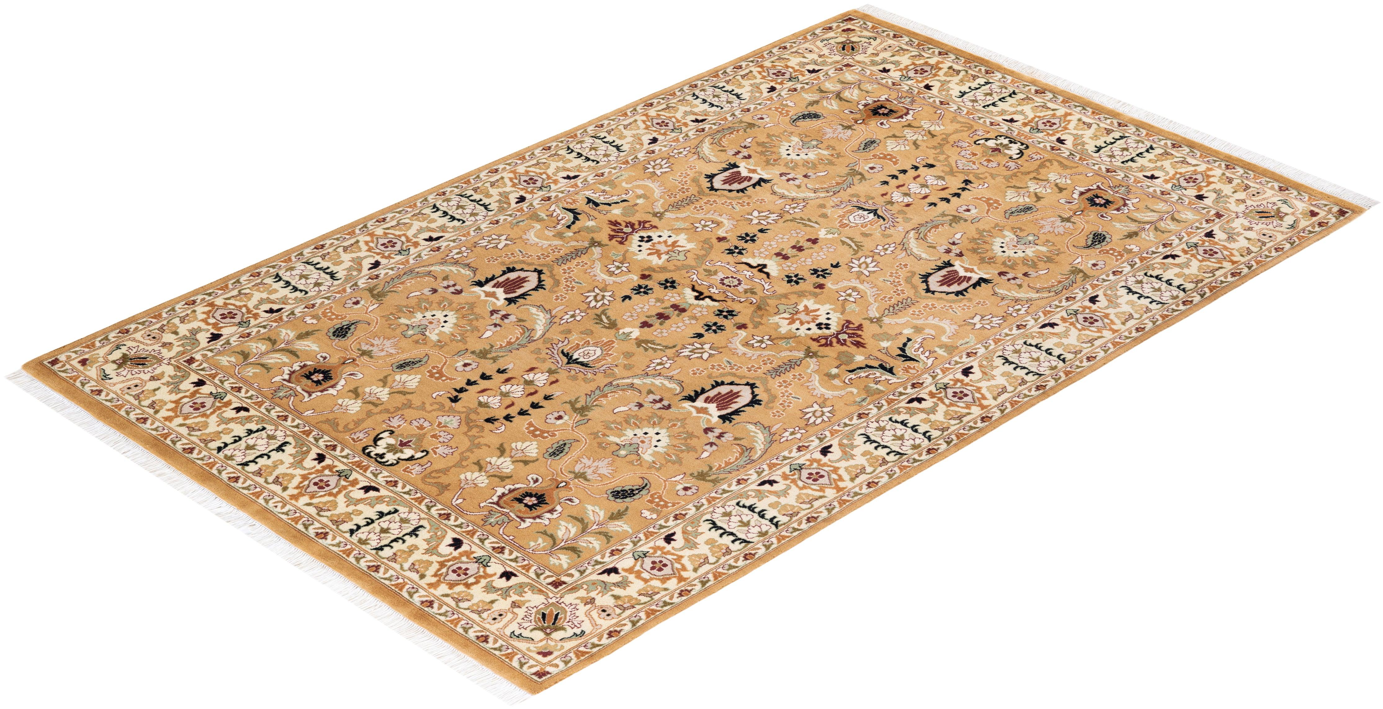 Traditional Hand Knotted Mogul Oriental Yellow Area Rug 4' 2" x 6' 5"