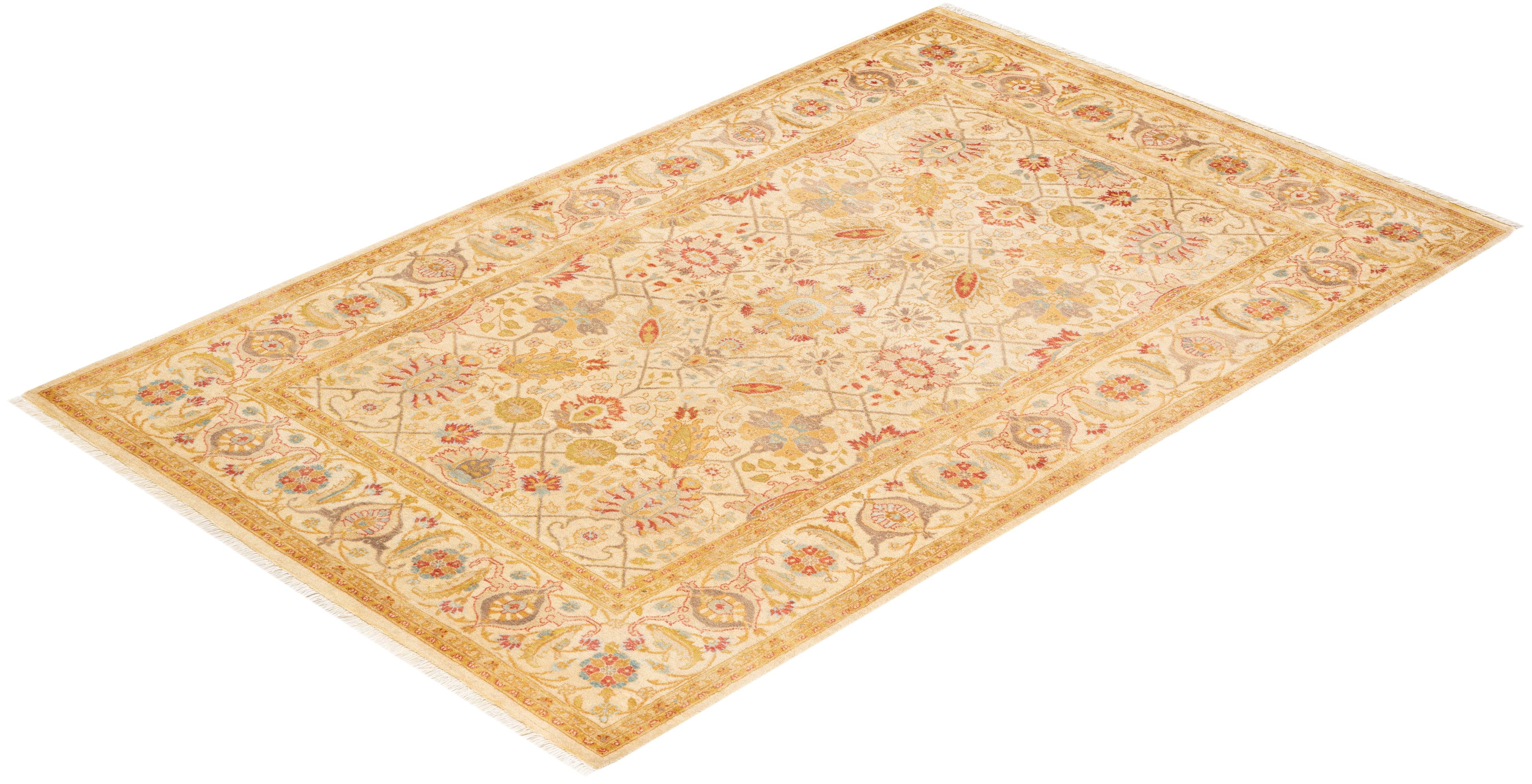 Traditional Hand Knotted Mogul Oriental Ivory Area Rug 4' 1" x 6' 5"