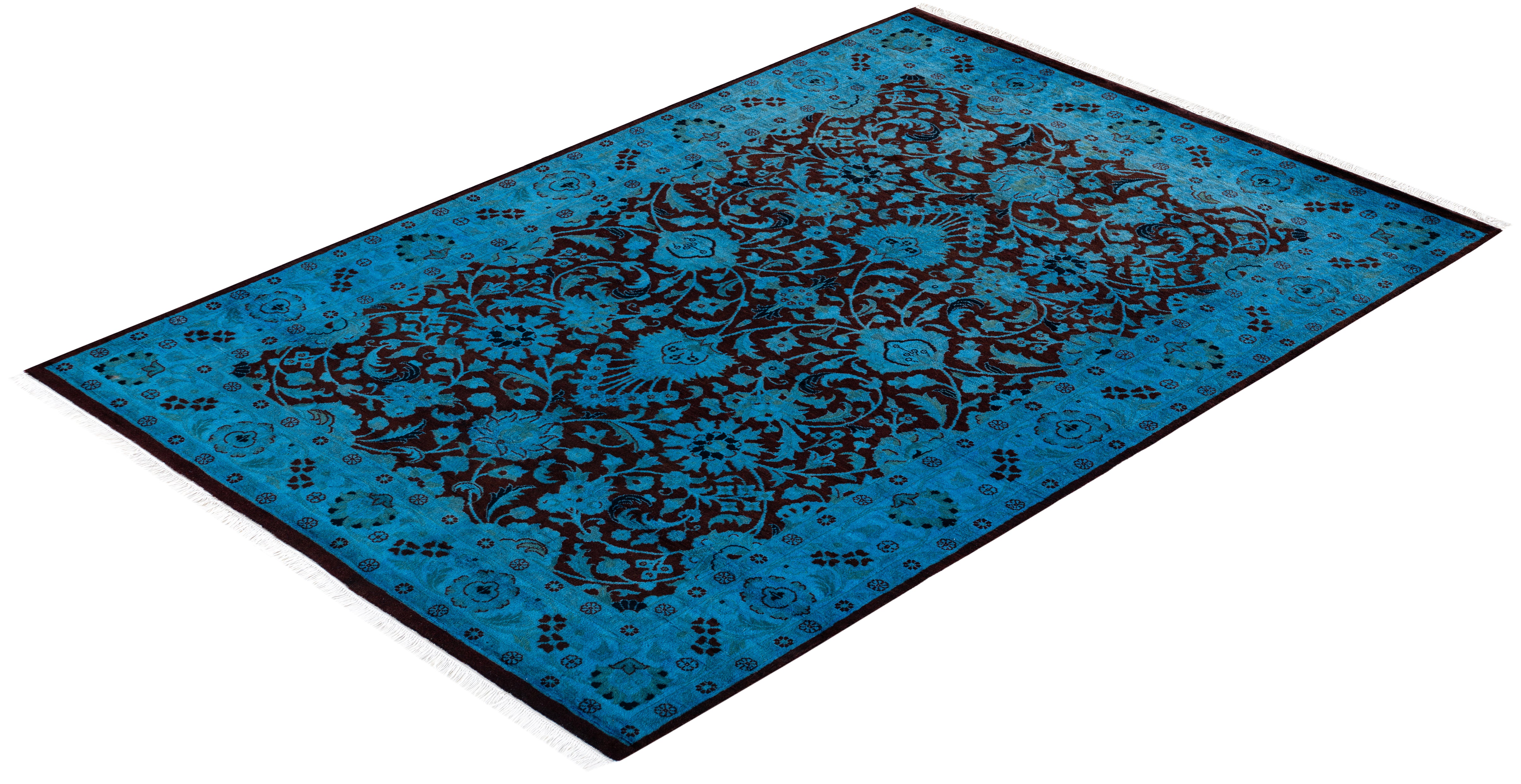 Contemporary Hand Knotted Overdyed Blue Area Rug 4' 1" x 6' 1"