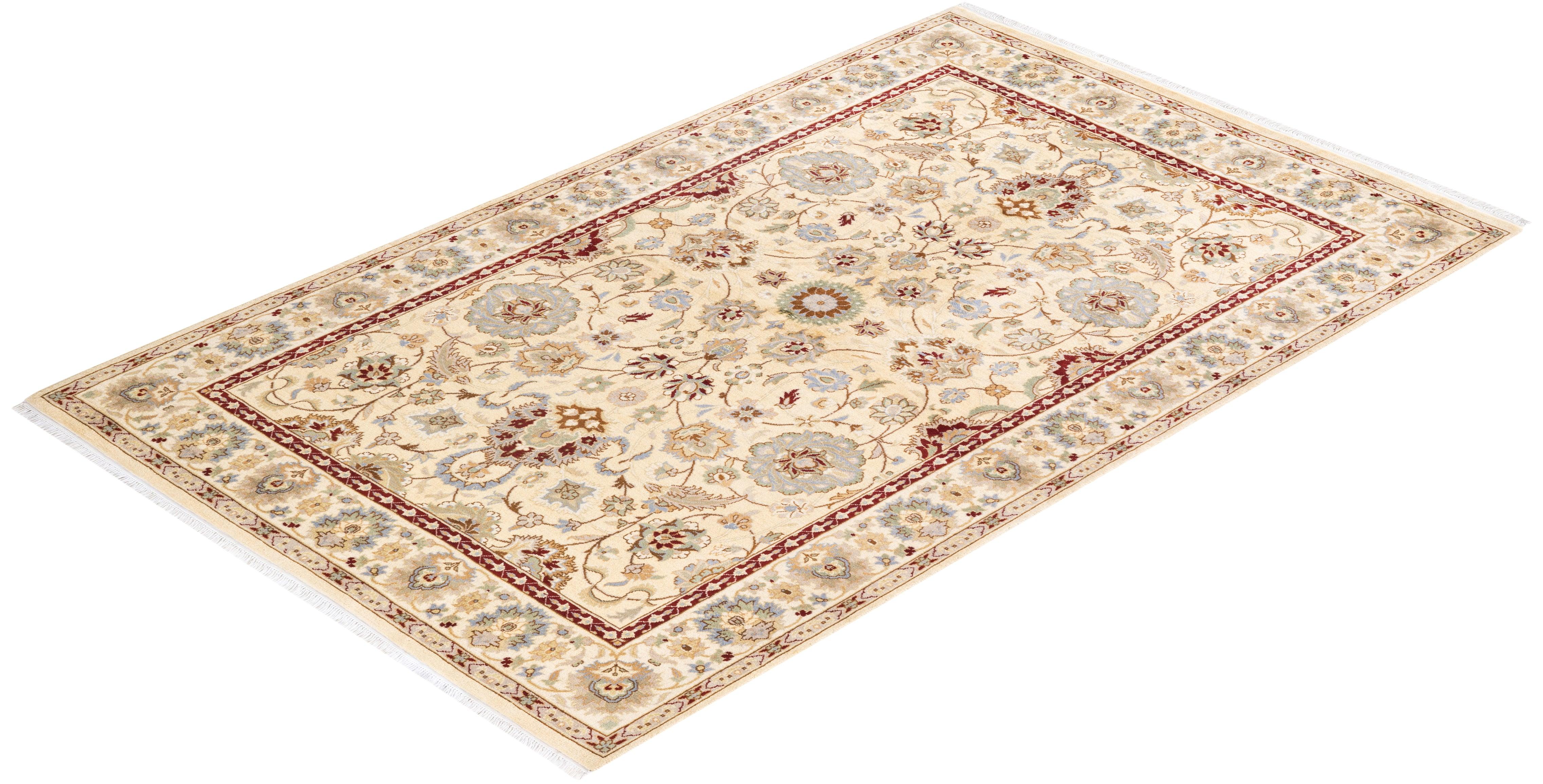 Traditional Hand Knotted Mogul Oriental Ivory Area Rug 4' 1" x 6' 5"