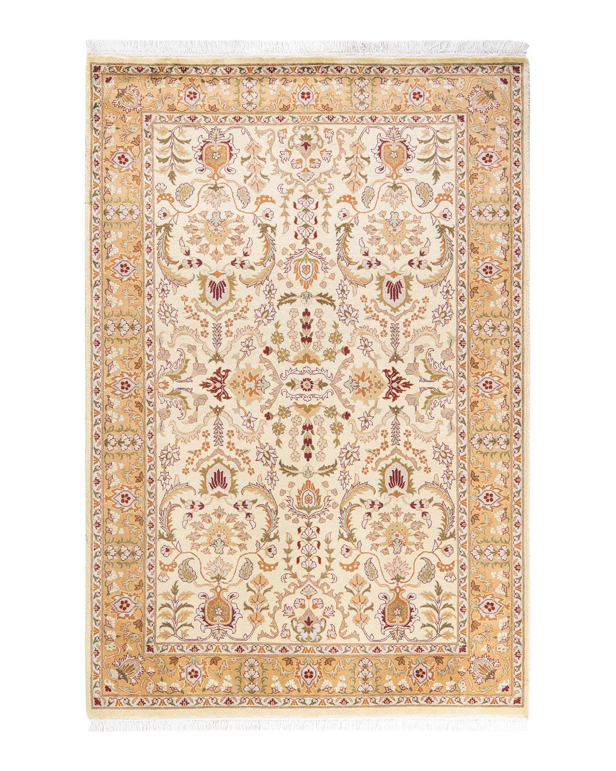 Traditional Hand Knotted Mogul Oriental Ivory Area Rug 4' 2" x 6' 3"