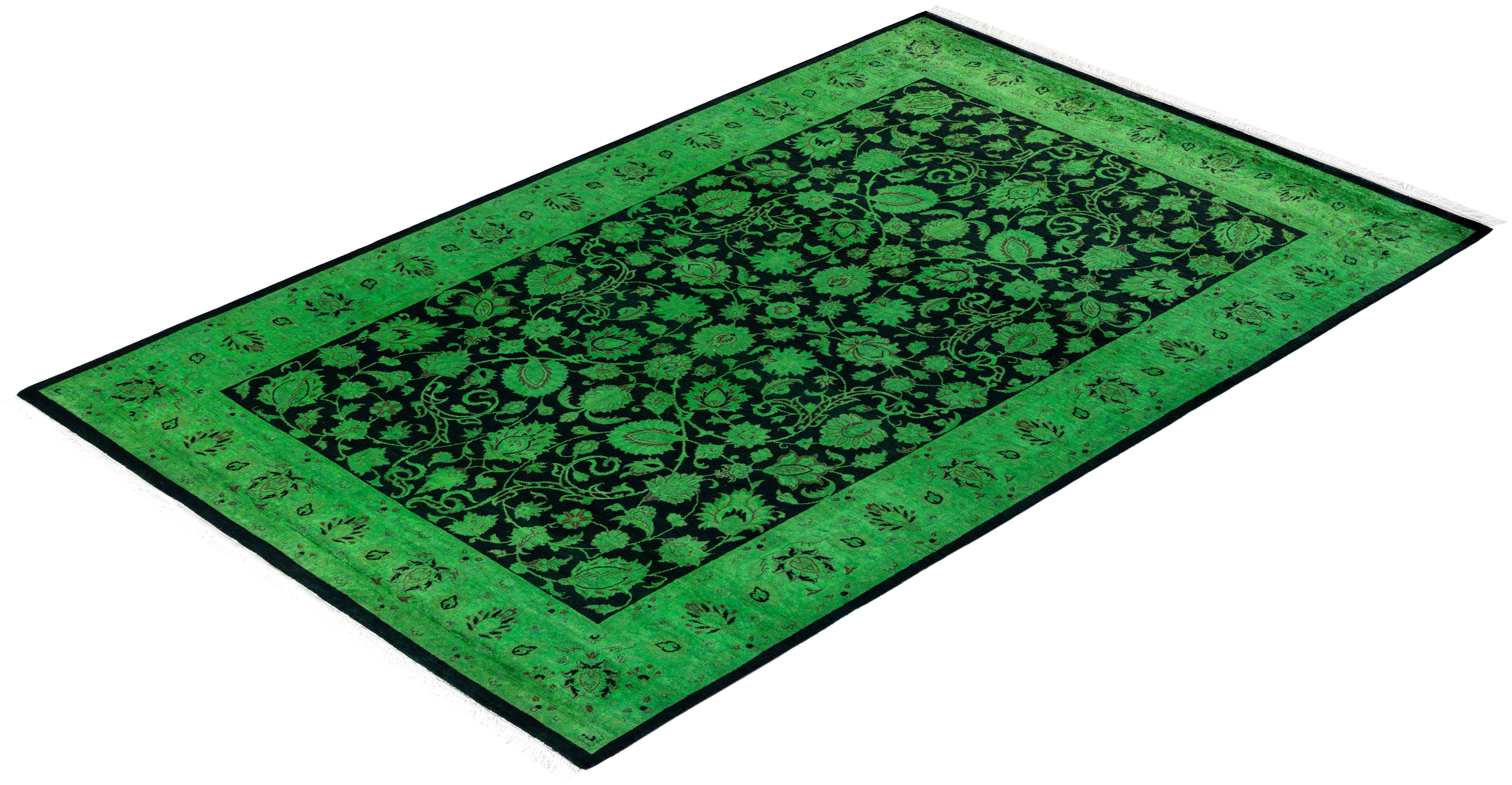 Contemporary Hand Knotted Overdyed Green Area Rug 4' 1" x 6' 5"