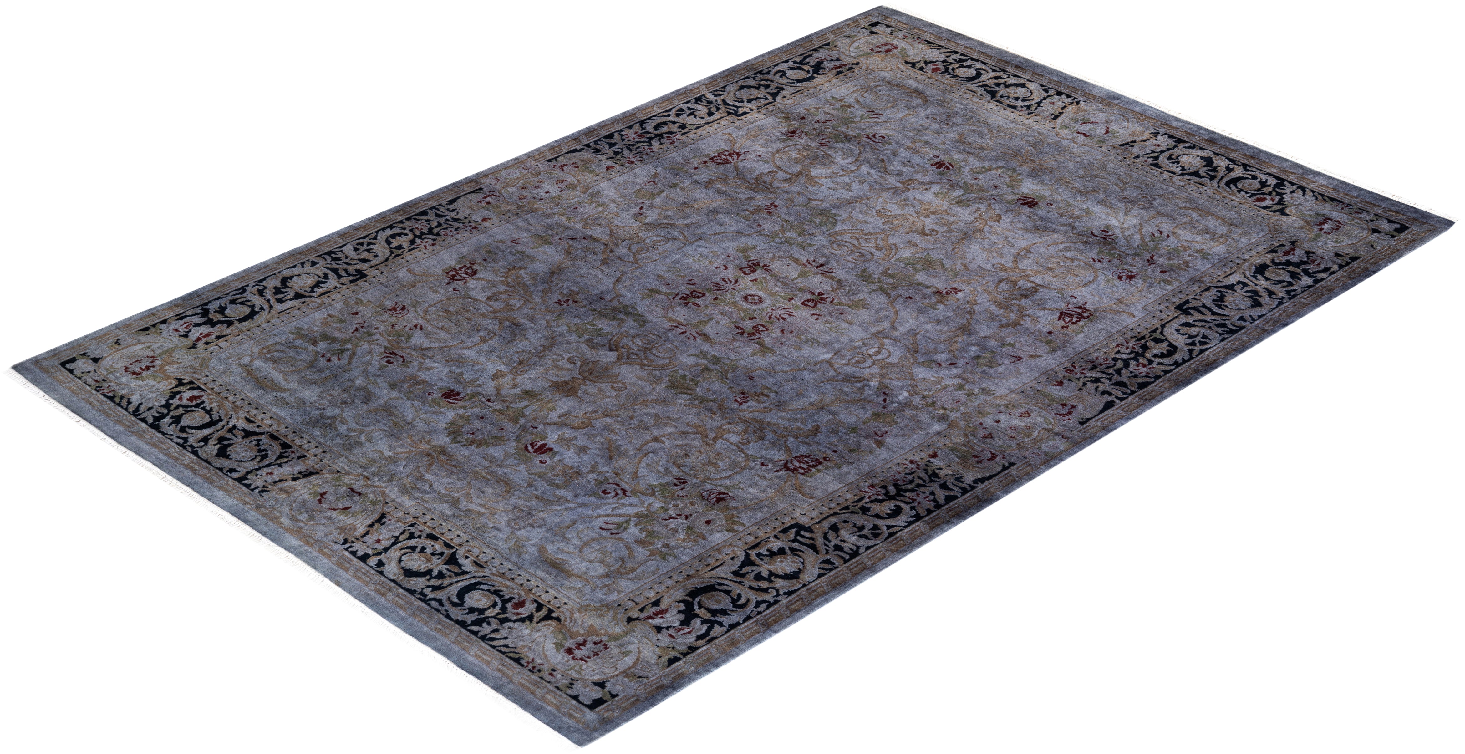 Contemporary Hand Knotted Overdyed Purple Area Rug 4' 7" x 6' 10"