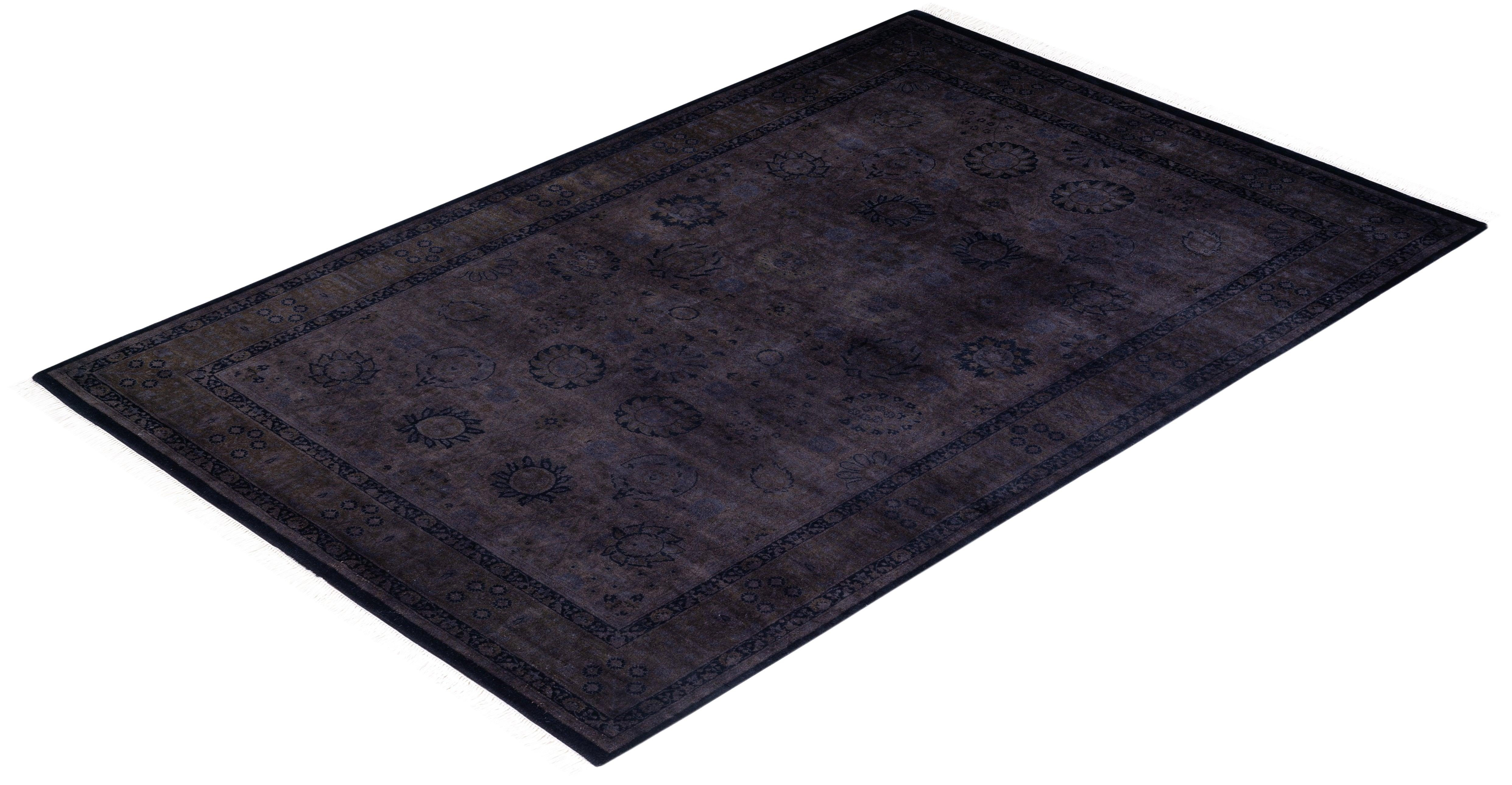 Contemporary Hand Knotted Overdyed Black Area Rug 4' 4" x 6' 3"