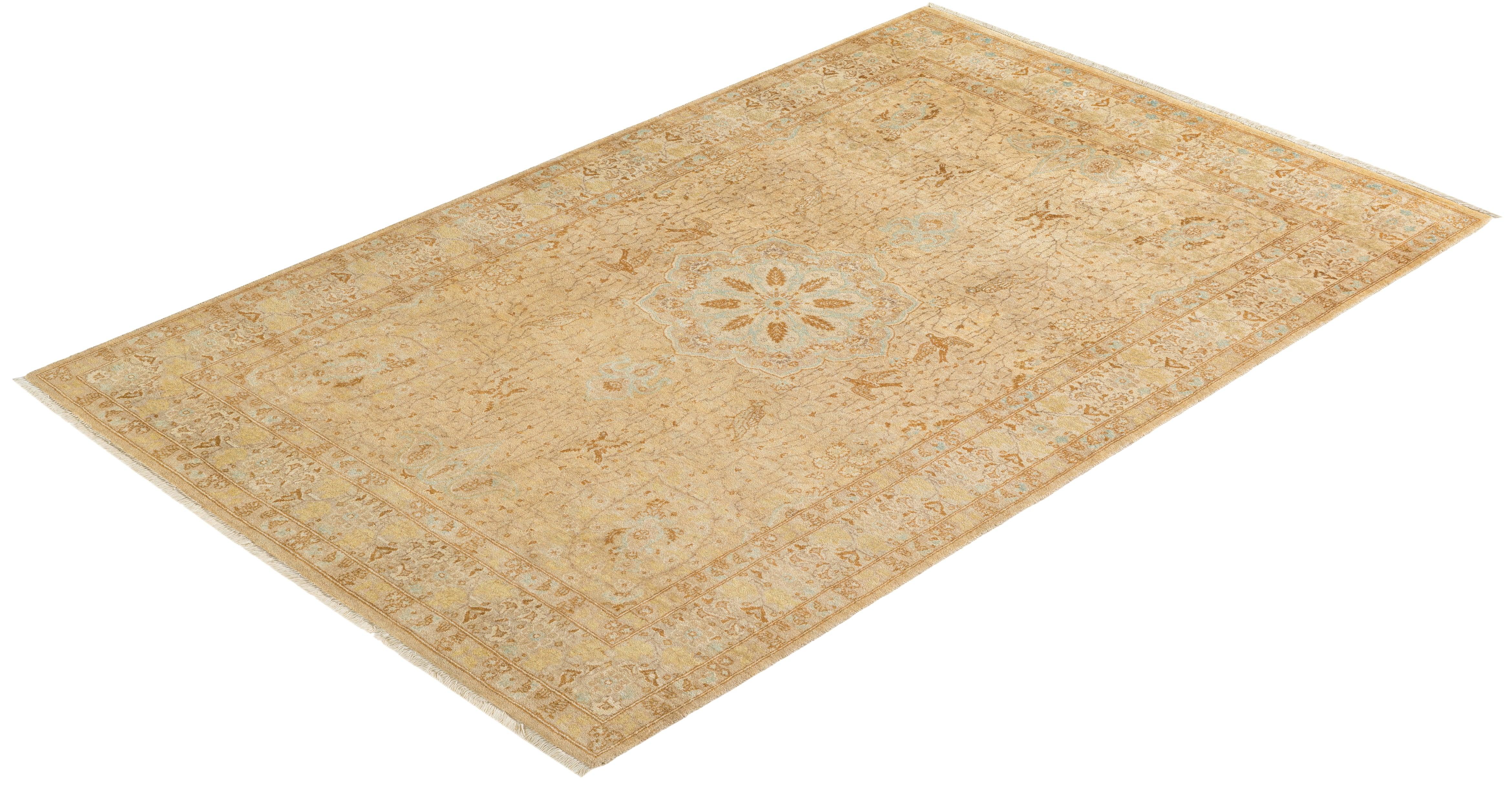 Traditional Hand Knotted Mogul Floral Ivory Area Rug 4' 0" x 6' 2"