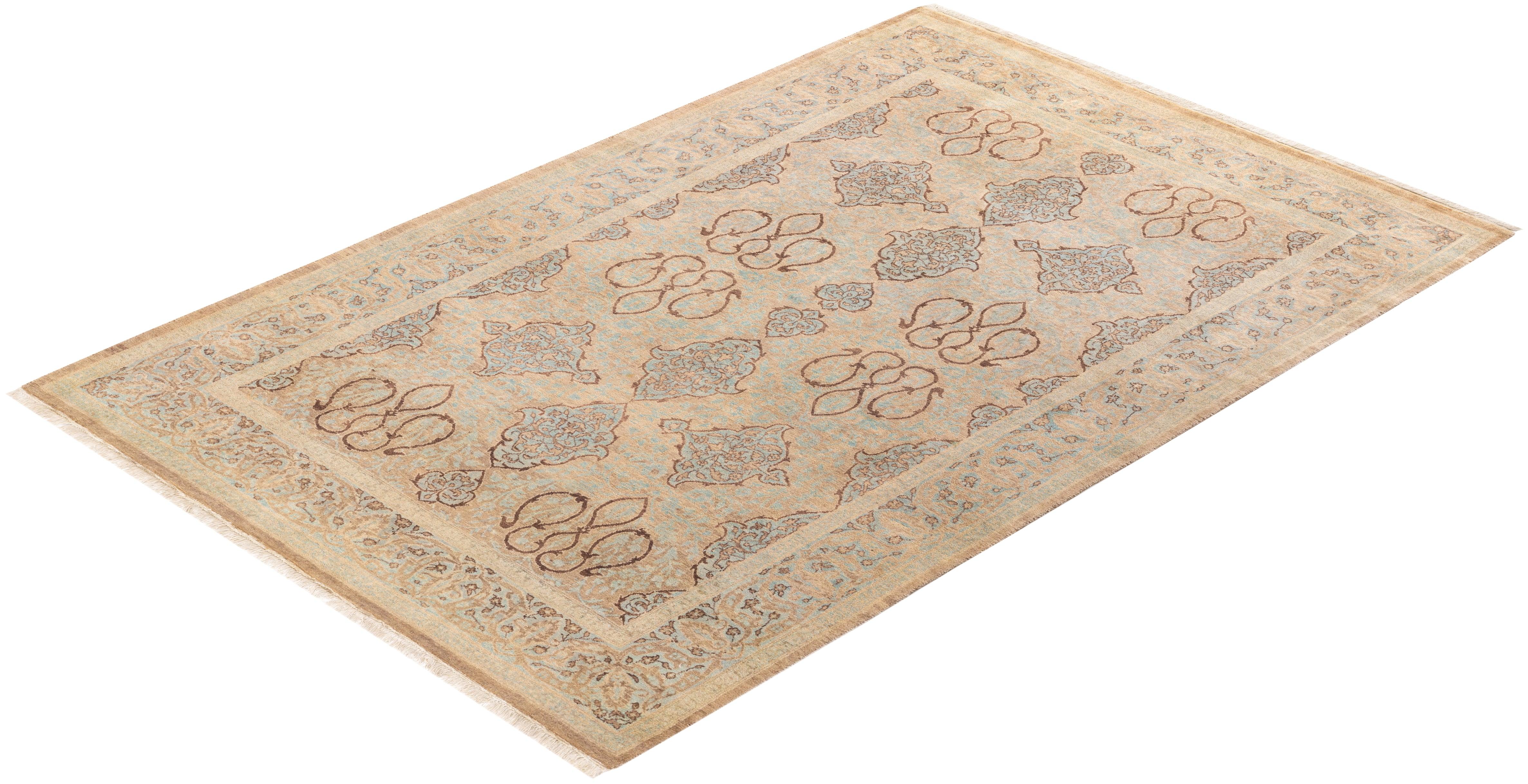 Traditional Hand Knotted Mogul Floral Brown Area Rug 4' 2" x 6' 3"