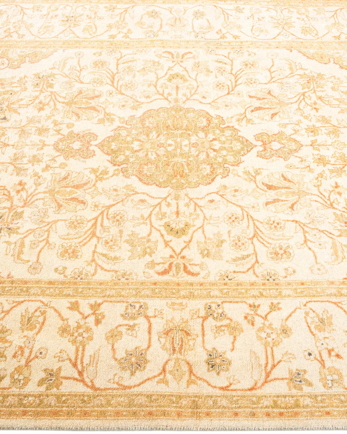 Traditional Hand Knotted Mogul Floral Ivory Area Rug 4' 1" x 6' 2"