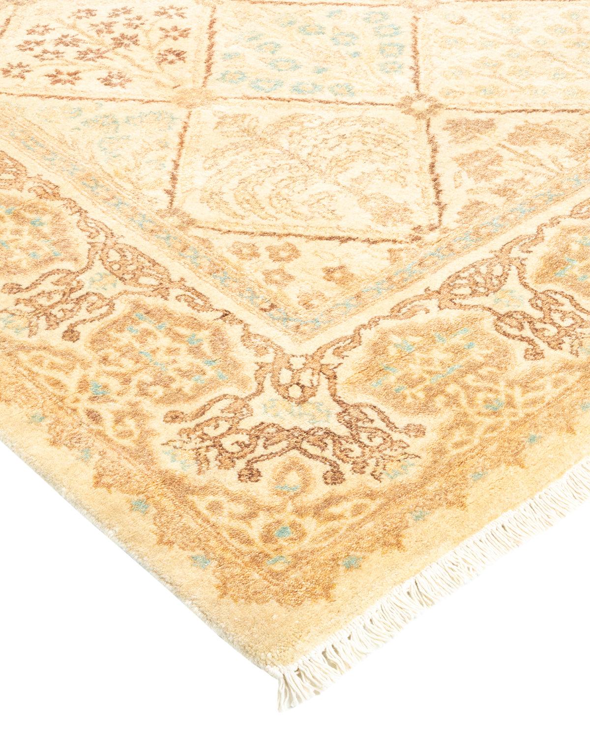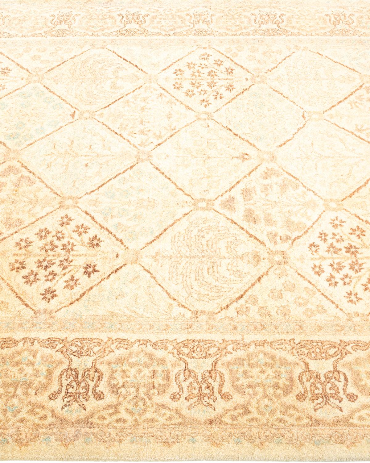 Traditional Hand Knotted Mogul Geometric Ivory Area Rug 4' 2" x 6' 2"