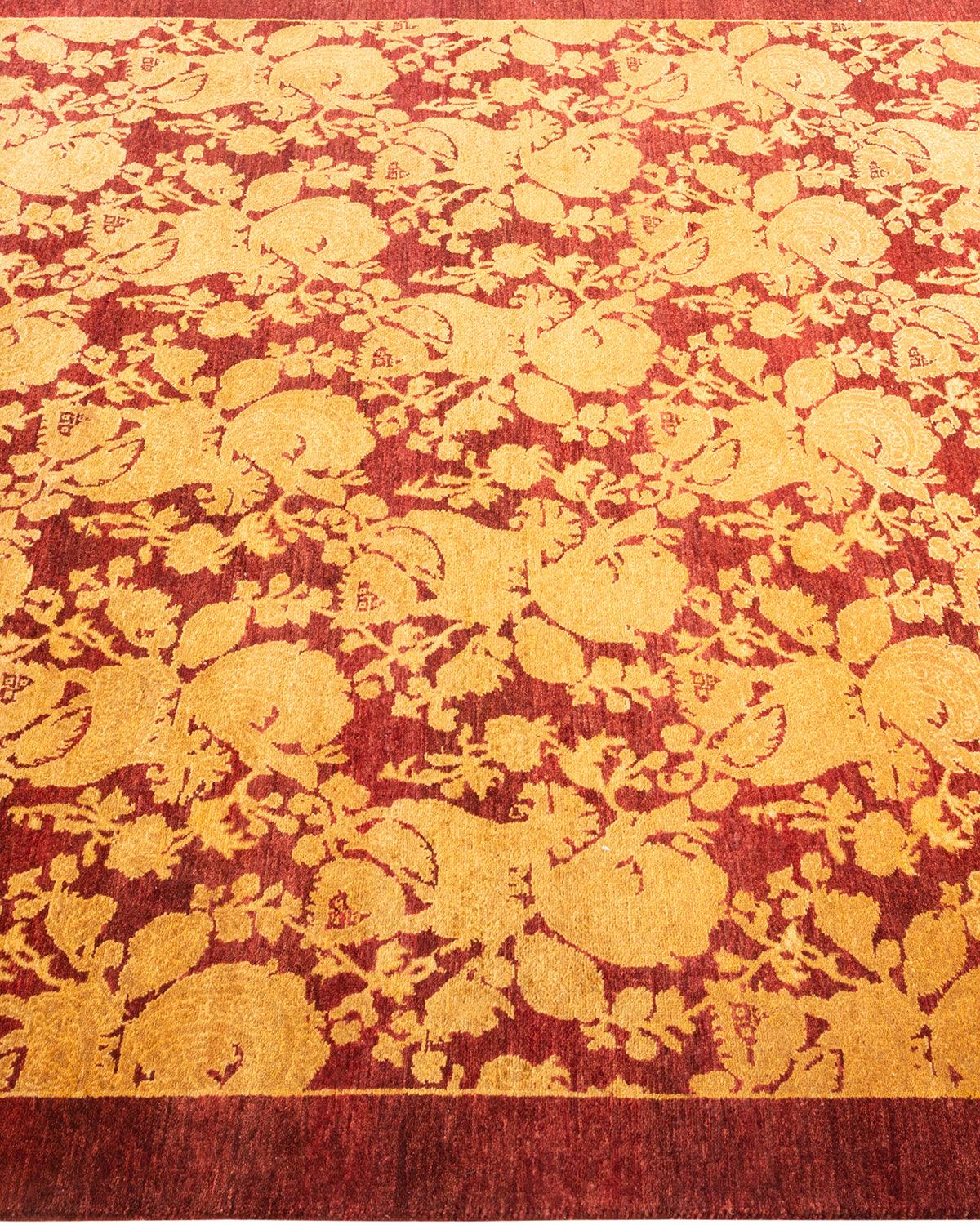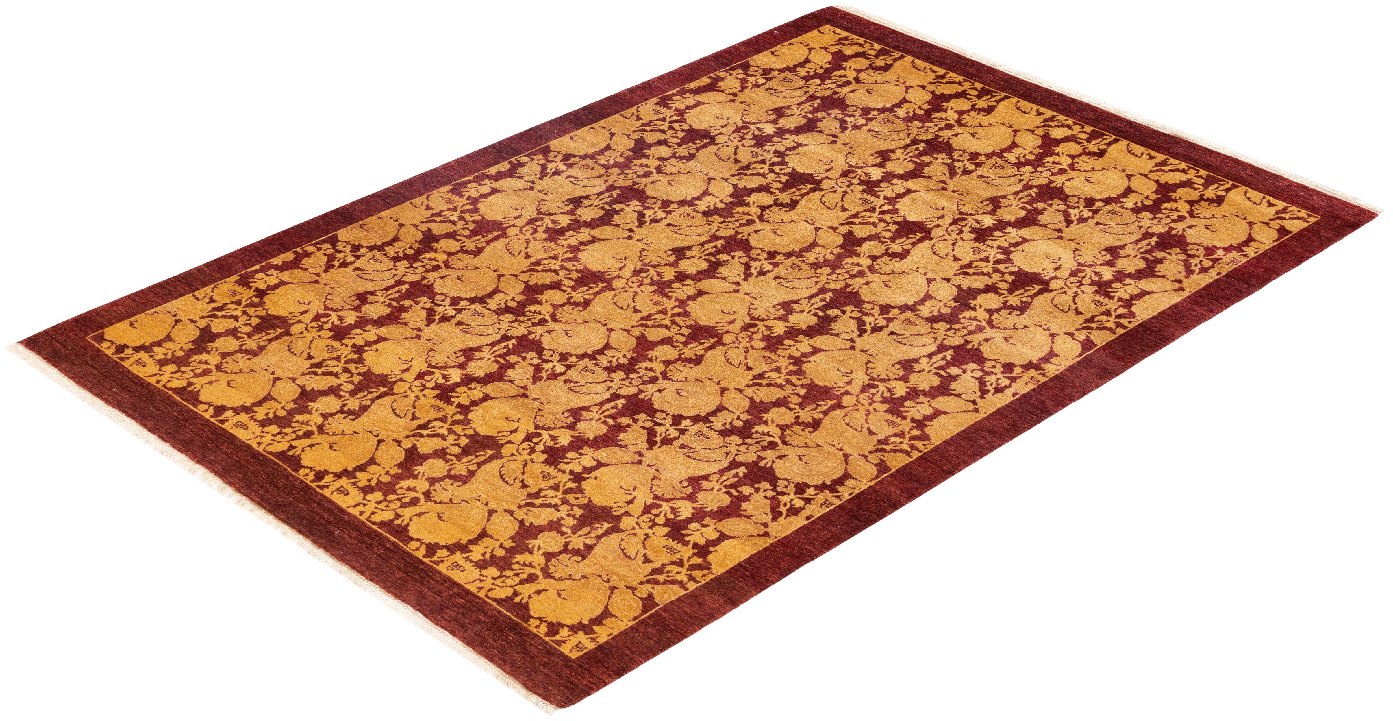 Traditional Hand Knotted Mogul Abstract Red Area Rug 4' 2" x 6' 0"