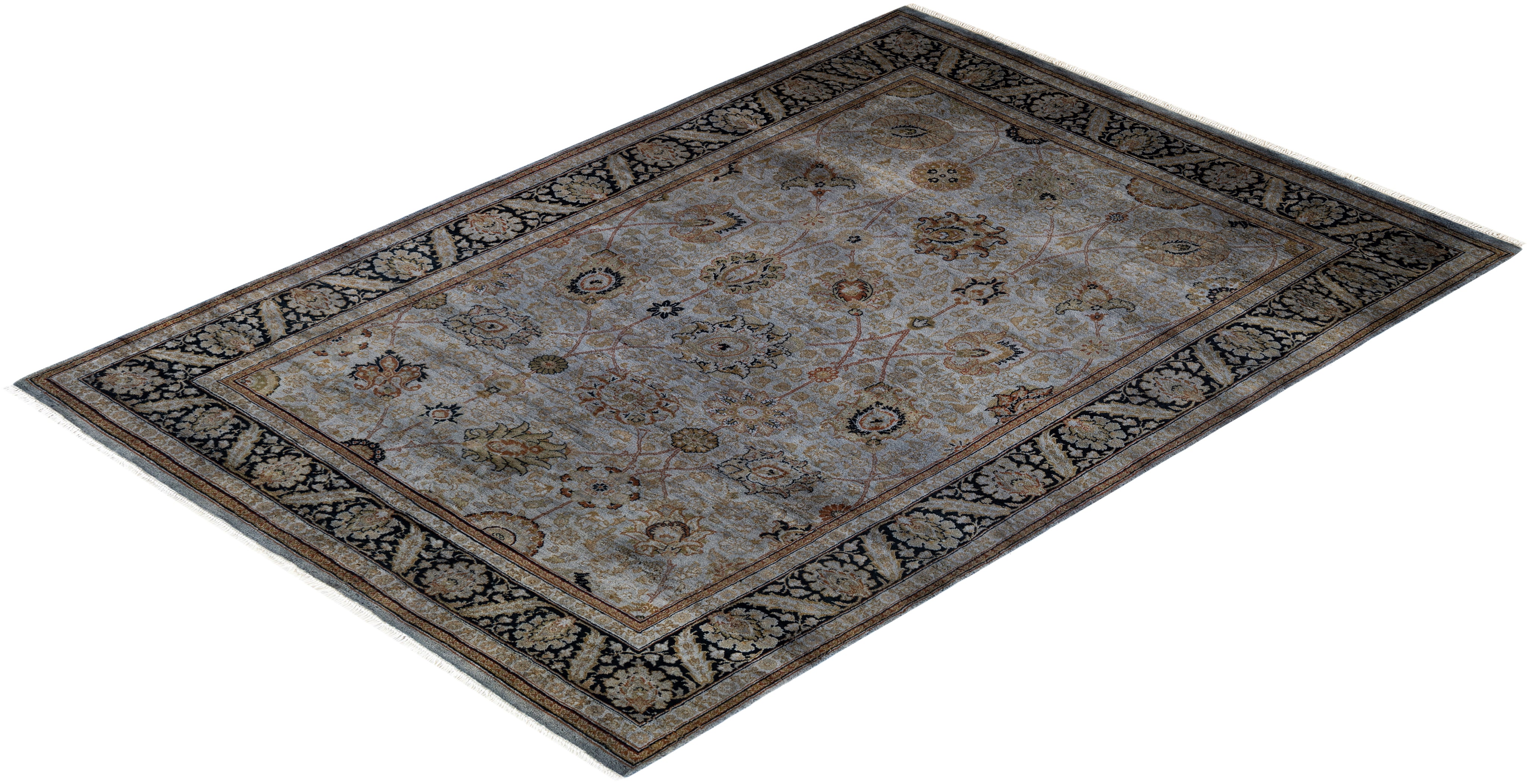 Contemporary Hand Knotted Overdyed Gray Area Rug 4' 7" x 6' 5"