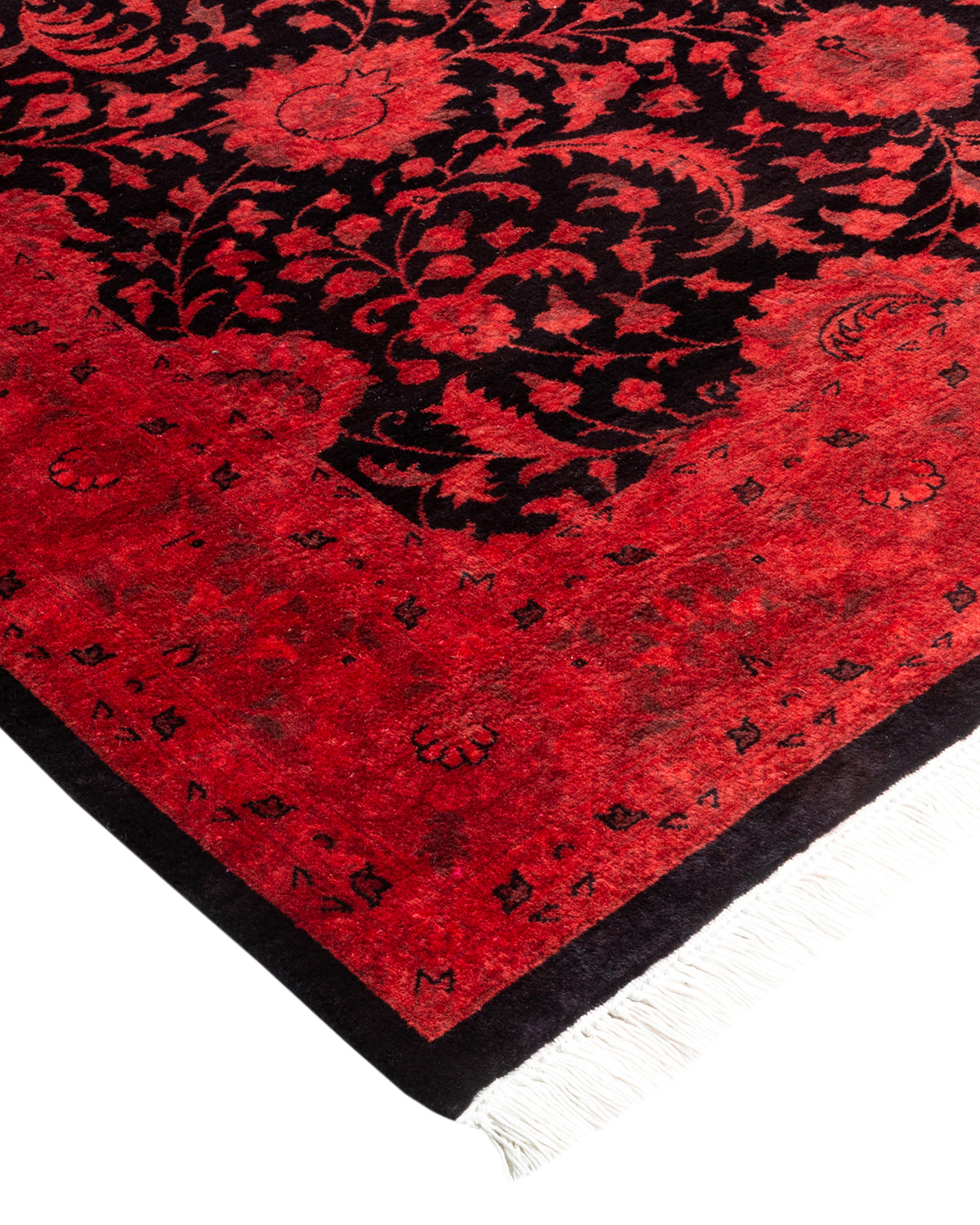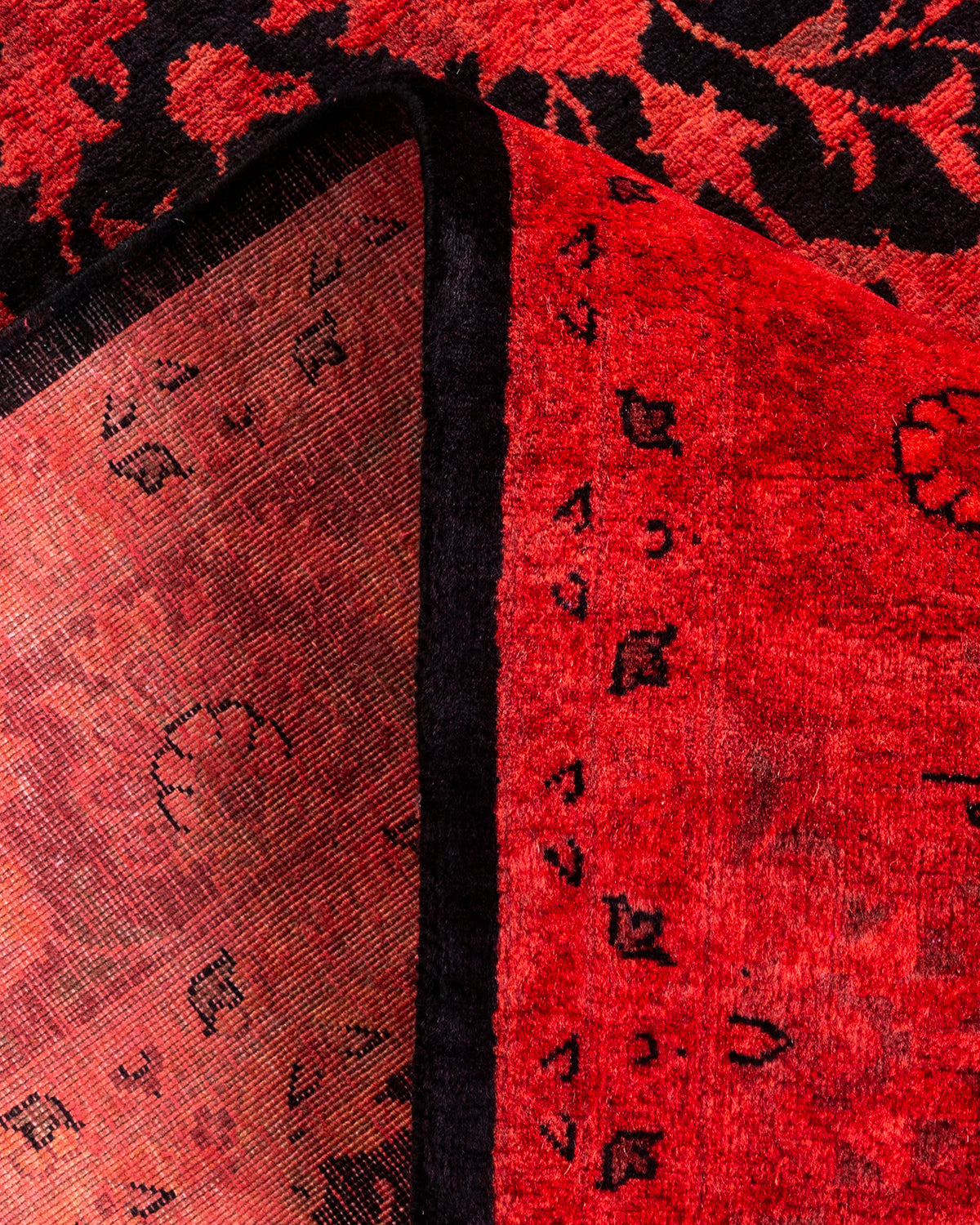Contemporary Hand Knotted Overdyed Red Area Rug 4' 2" x 6' 1"