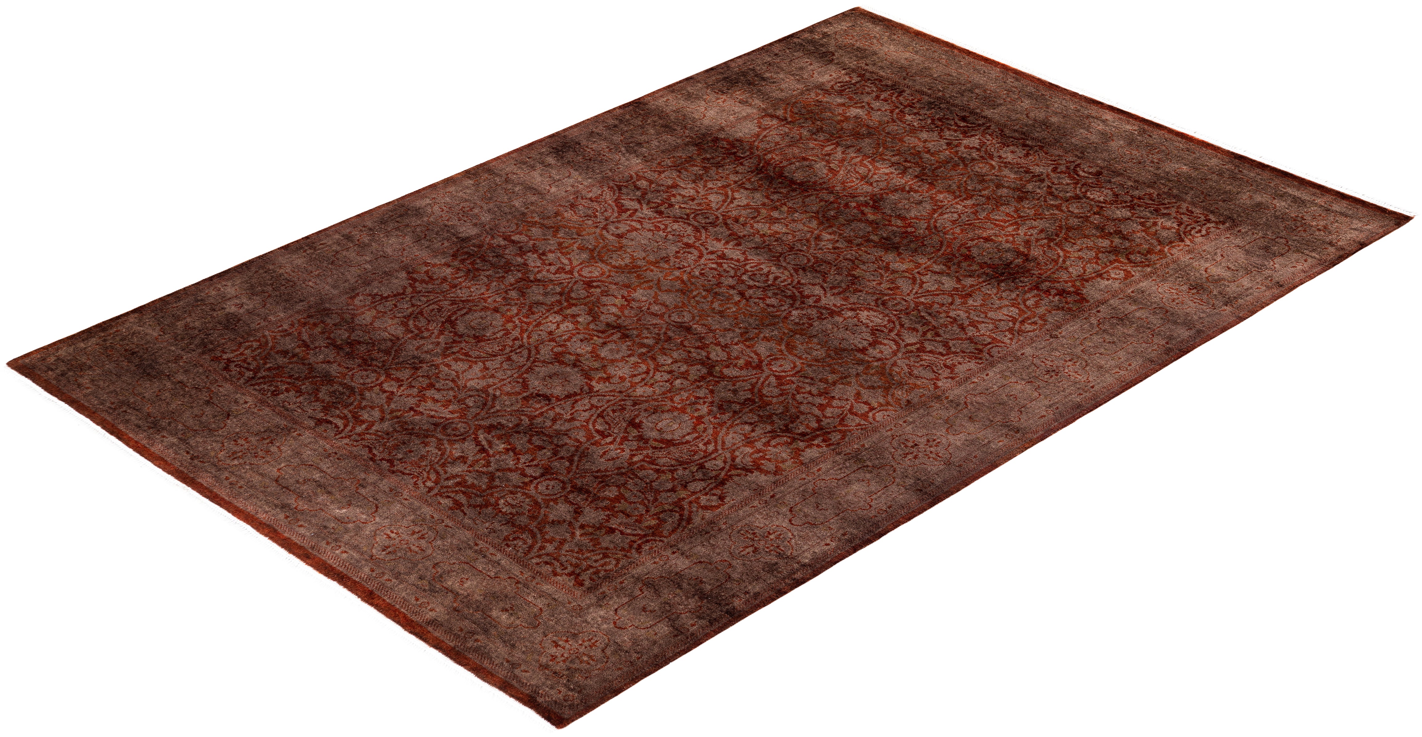 Contemporary Hand Knotted Overdyed Brown Area Rug 4' 1" x 6' 3"